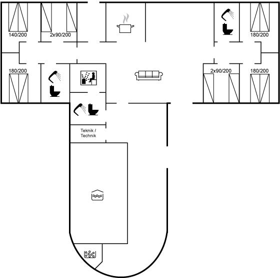 Der er i alt 6 soveværelser. Sovepladserne fordeler sig på: 8 sovepladser i dobbeltsenge. 4 sovepladser i enkeltsenge. Derudover er der 1 stk. barneseng.