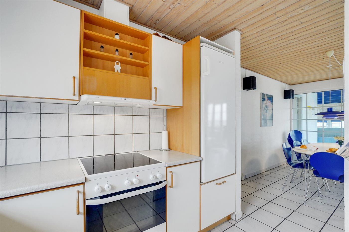 Køkkenet er udstyret med 1 køleskab. Der er 4 keramiske kogeplader, varmluftovn, mikrobølgeovn samt opvaskemaskine.