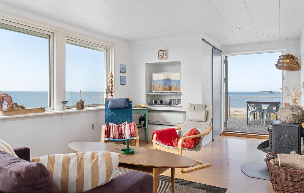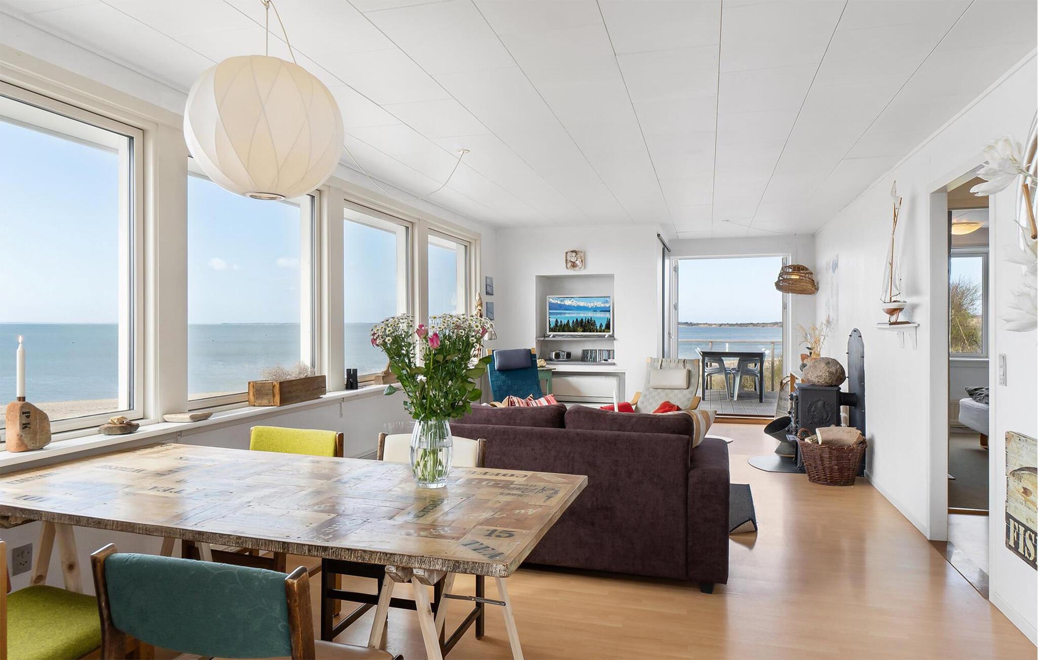 Velkommen til dette lækre sommerhus giver jer den perfekte oase til en afslappende ferie. Den fredfyldte beliggenhed lige ud til stranden skaber de optimale betingelser for at slappe af med familien. Lad blikket vandre over vandet og mærk, hvordan roen automatisk sænker sig. Opholdsstuen er et skønt sted at samles, for her kan I slå jer ned i de bløde sofaer og se en god film, mens ilden buldrer i brændeovnen. Find sammen om spisebordet og nyd måltiderne, som hver gang ledsages af den fantastiske udsigt.