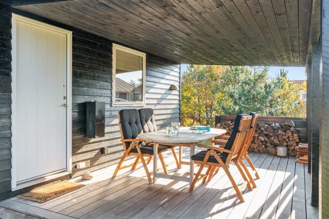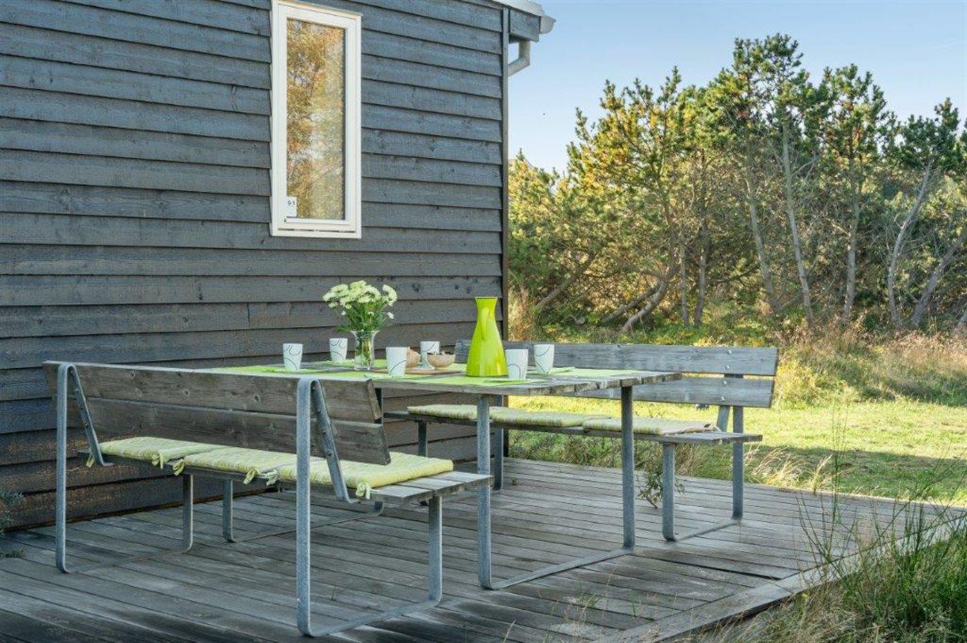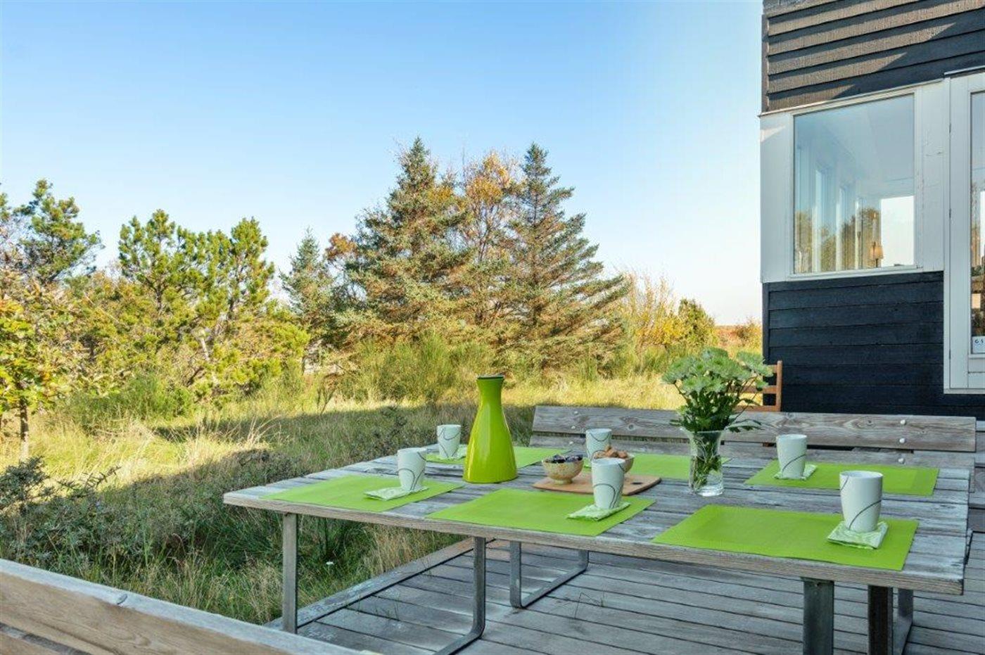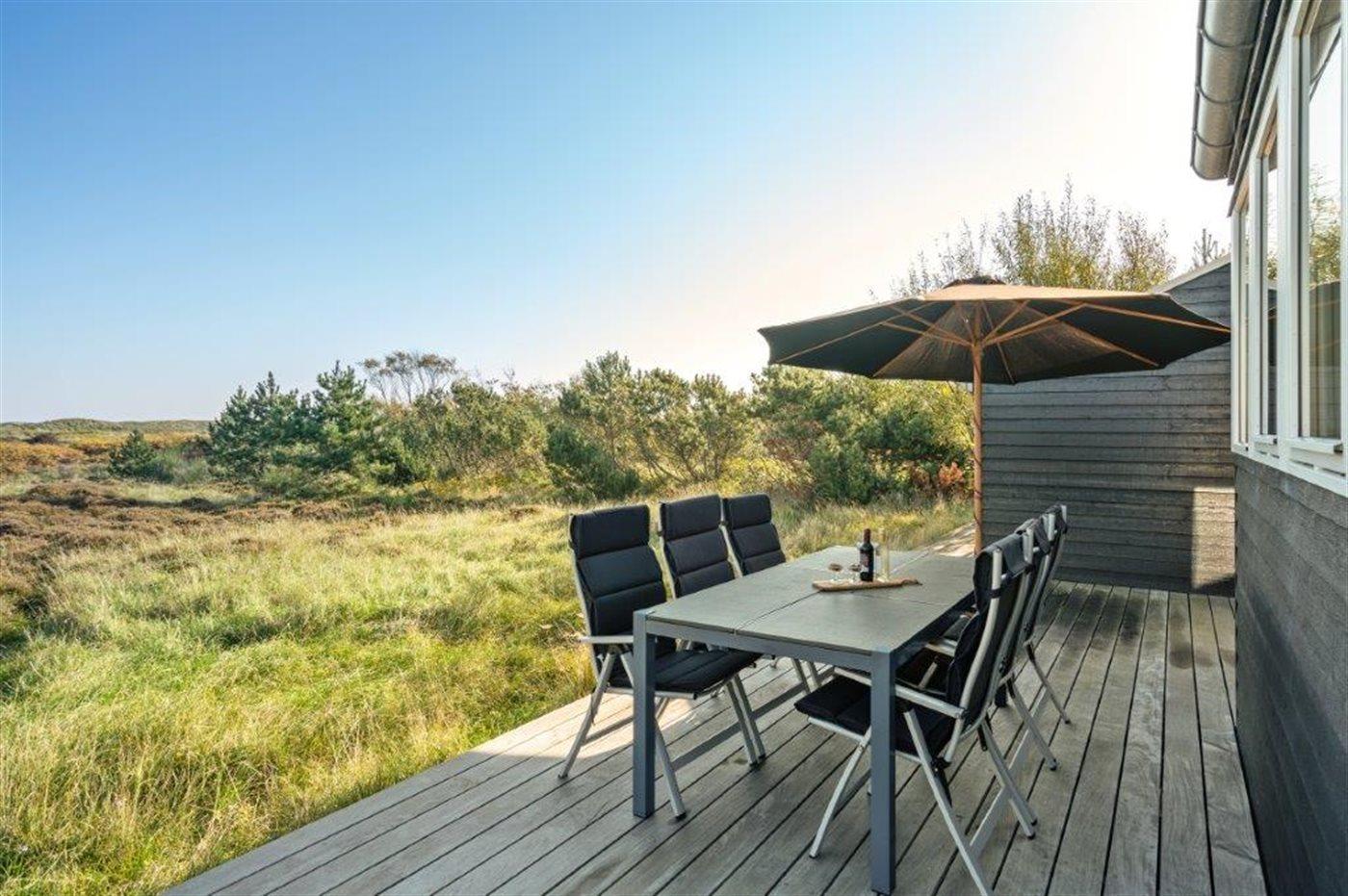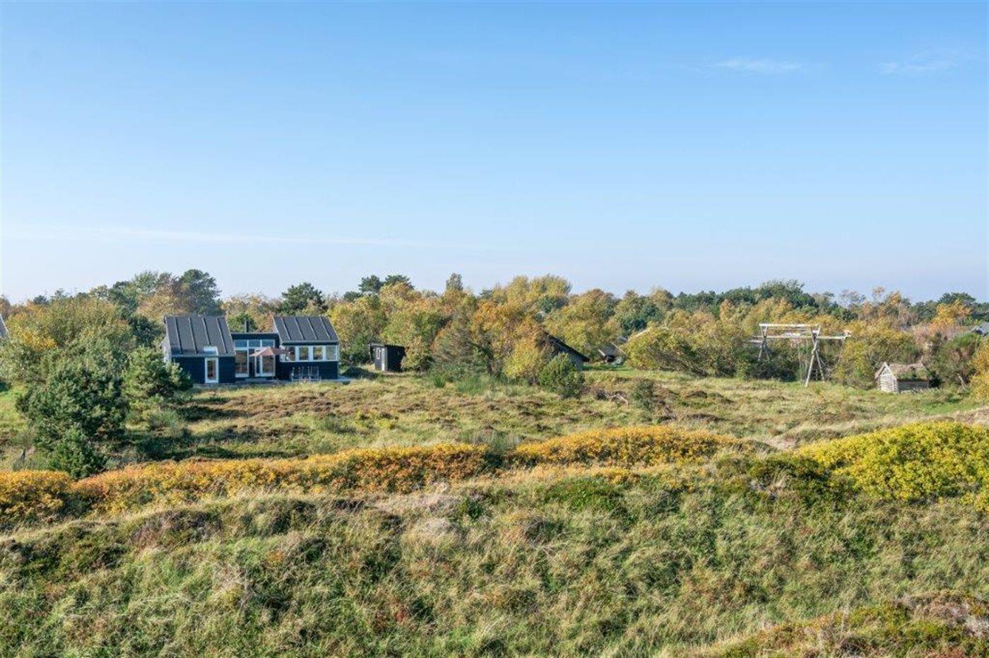 Ferieboligen er beliggende på en 2157 m² stor klitgrund. Der er 100 m til havet. Nærmeste forretning er beliggende i en afstand af 1800 m. Til ferieboligen hører 60 m² terrasseareal. Desuden er der 24 m² overdækket terrasse. Grill til rådighed. Parkering ved ferieboligen.