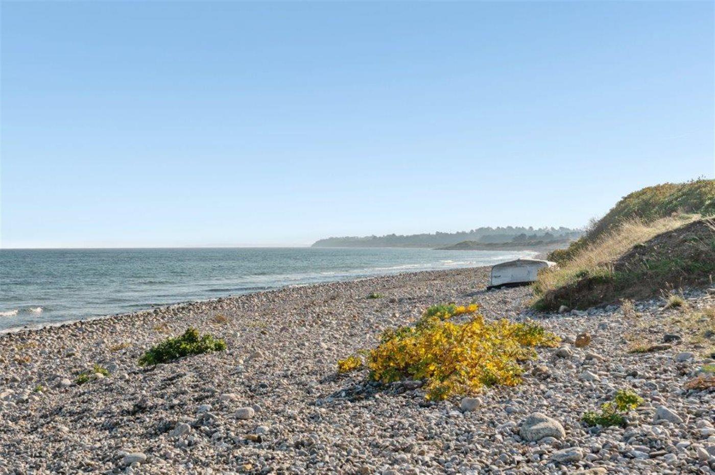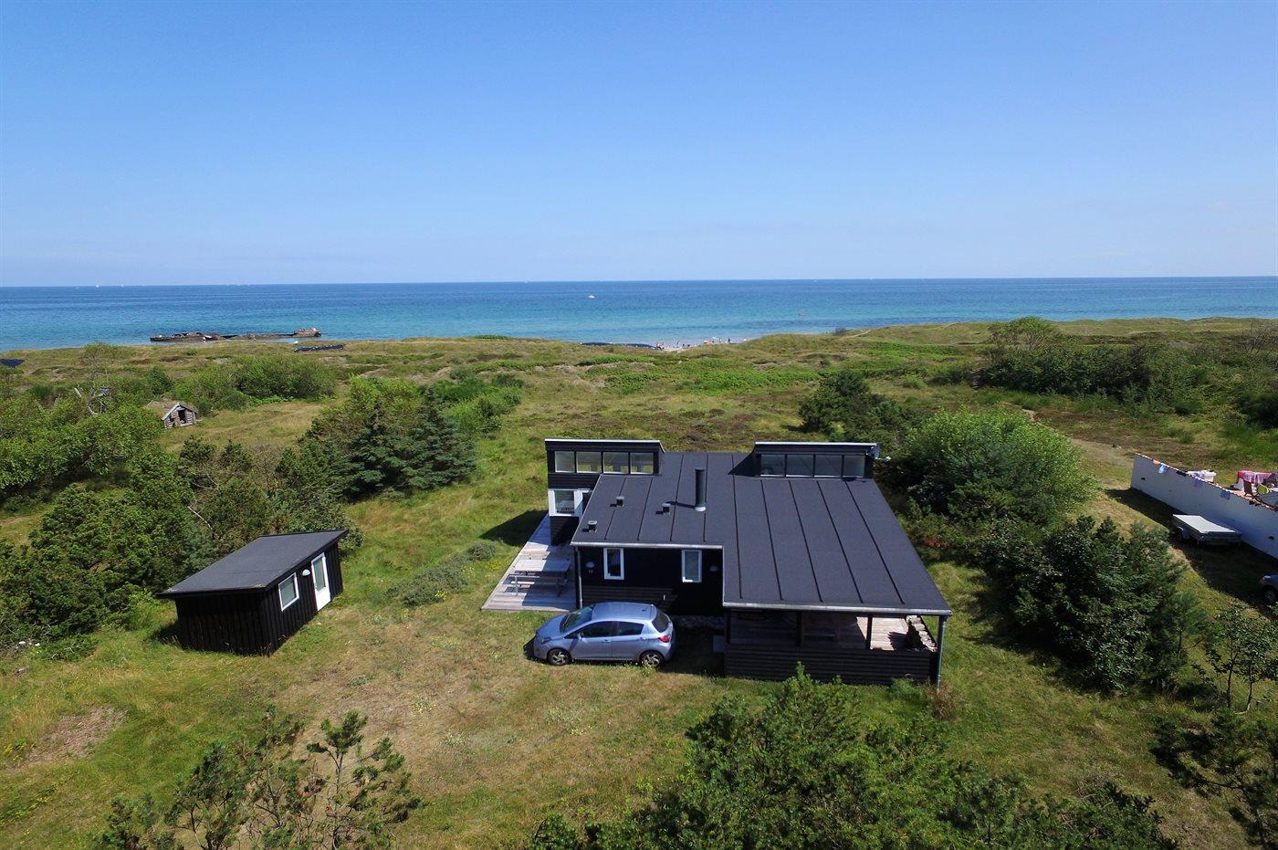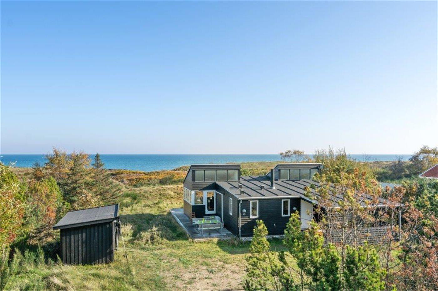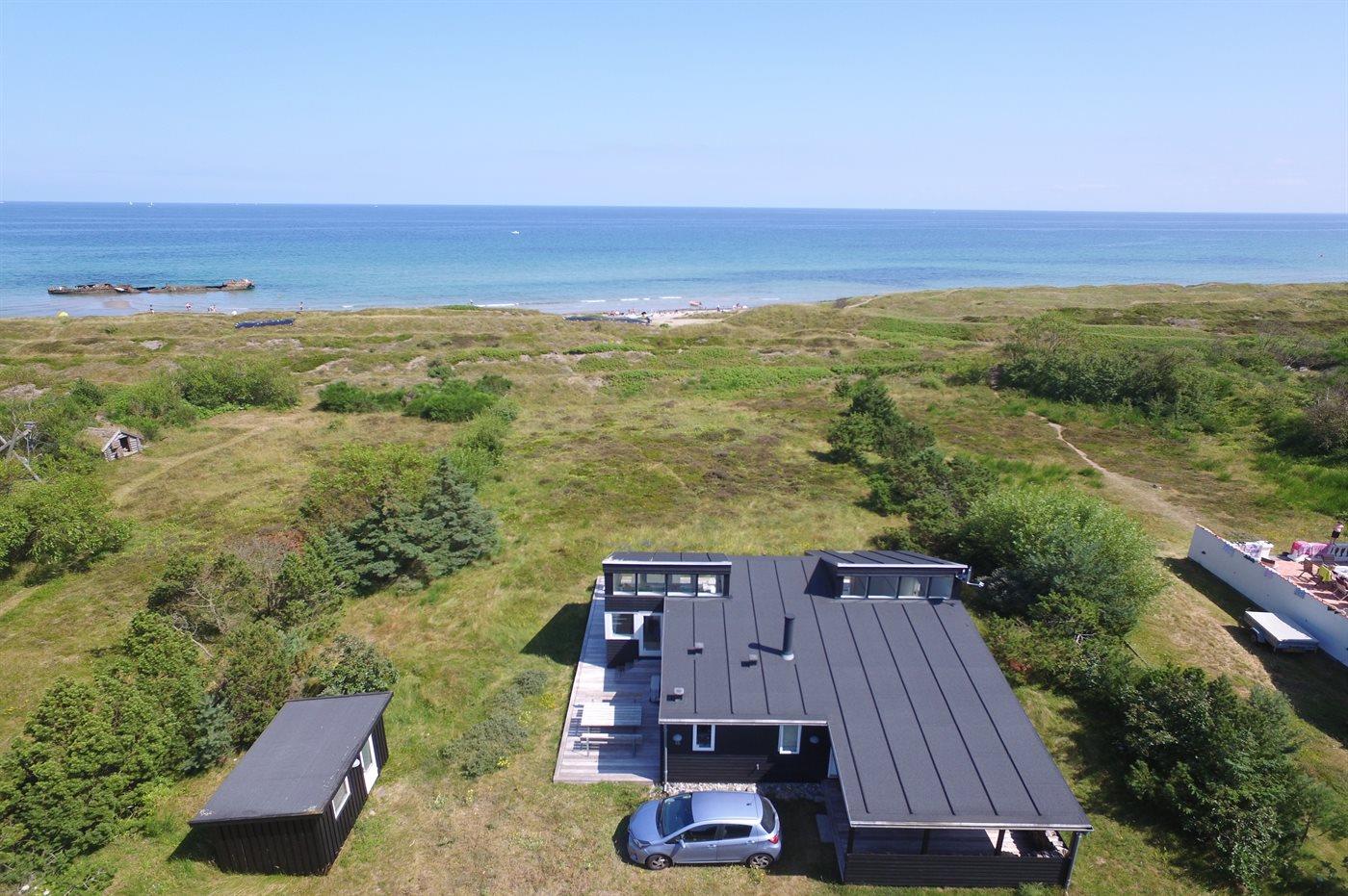Virkelig flot og indbydende sommerhus med en enestående udsigt til Kattegat, fra både spisestue, køkken, stue og den store træterrasse, der omgiver huset. Arkitekten har sørget for, at der er et smukt lysindfald i huset. Et af soveværelserne er med eget bad og toilet, og med direkte adgang ud til terrassen, som vender mod havet. Virkelig et dejligt sommerhus hvor man bor i et med naturen. Udenfor kan I slappe af på den store terrasse og nyde solen og havet. Der er god sandstrand og gode fangstmuligheder for lystfiskeren.