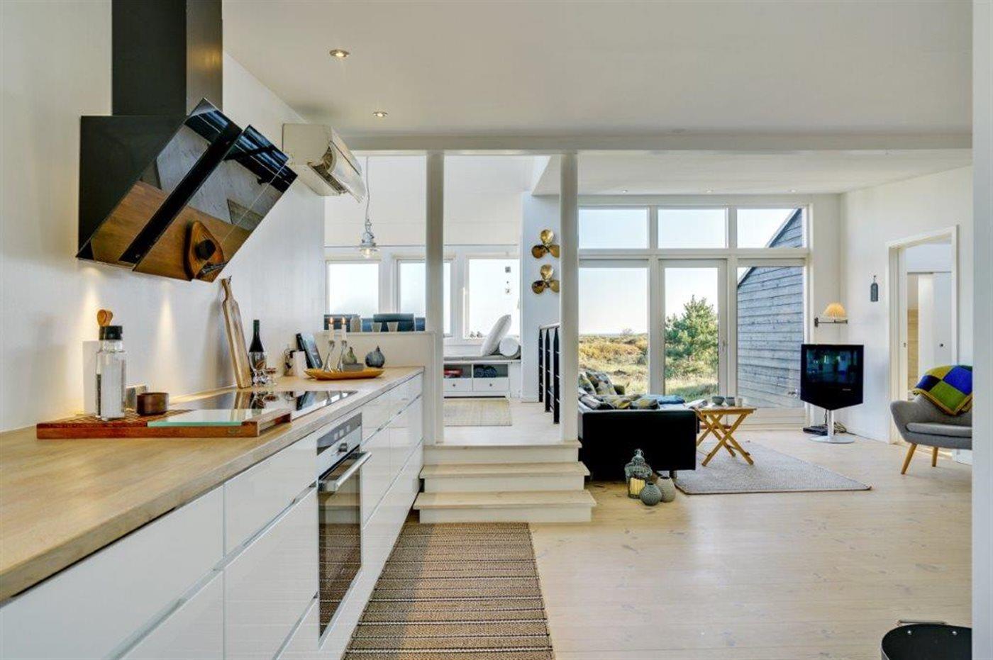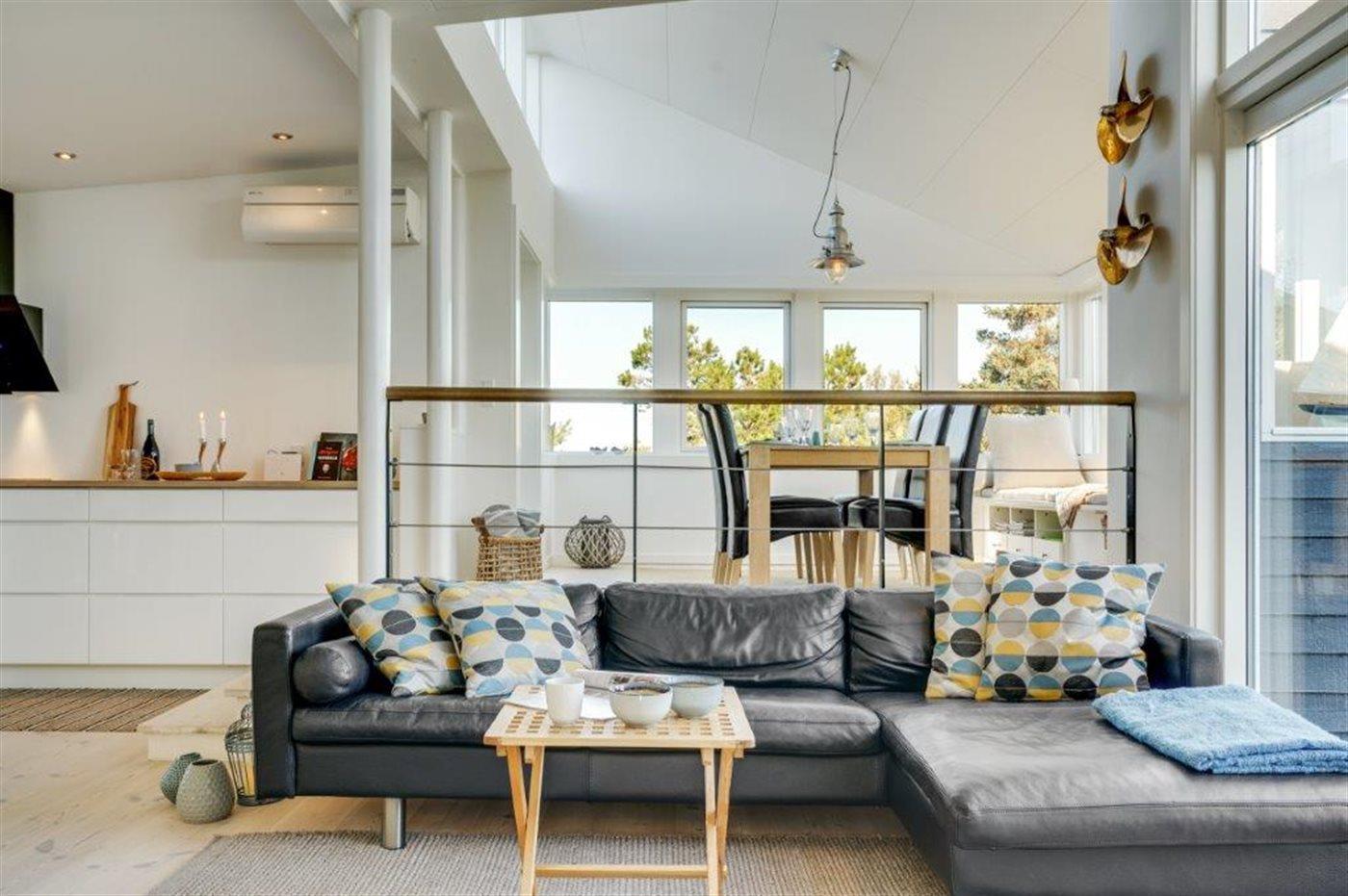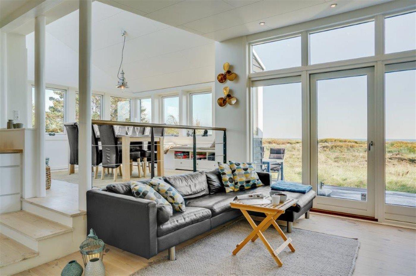 Virkelig flot og indbydende sommerhus med en enestående udsigt til Kattegat, fra både spisestue, køkken, stue og den store træterrasse, der omgiver huset. Arkitekten har sørget for, at der er et smukt lysindfald i huset. Et af soveværelserne er med eget bad og toilet, og med direkte adgang ud til terrassen, som vender mod havet. Virkelig et dejligt sommerhus hvor man bor i et med naturen. Udenfor kan I slappe af på den store terrasse og nyde solen og havet. Der er god sandstrand og gode fangstmuligheder for lystfiskeren.