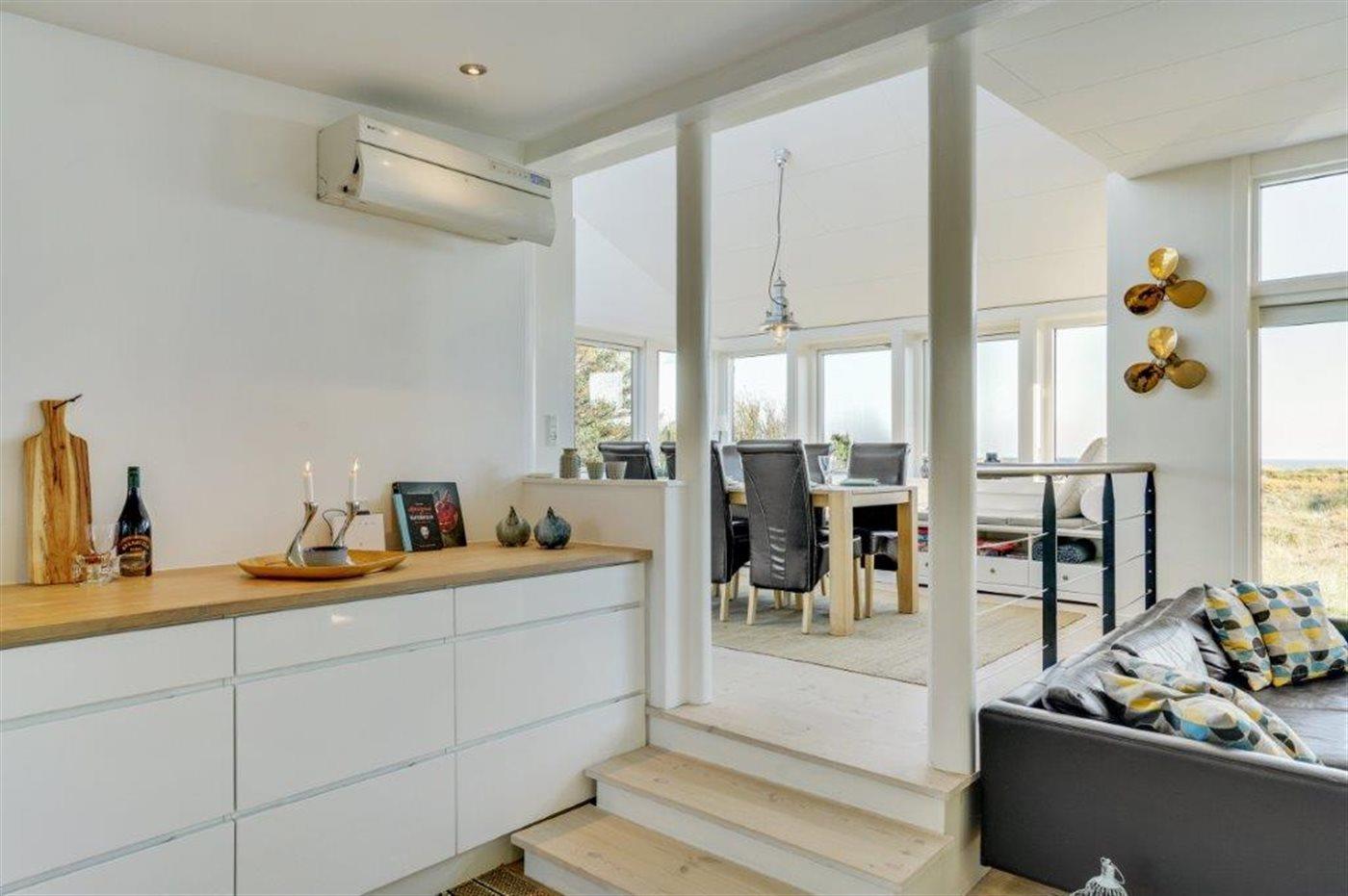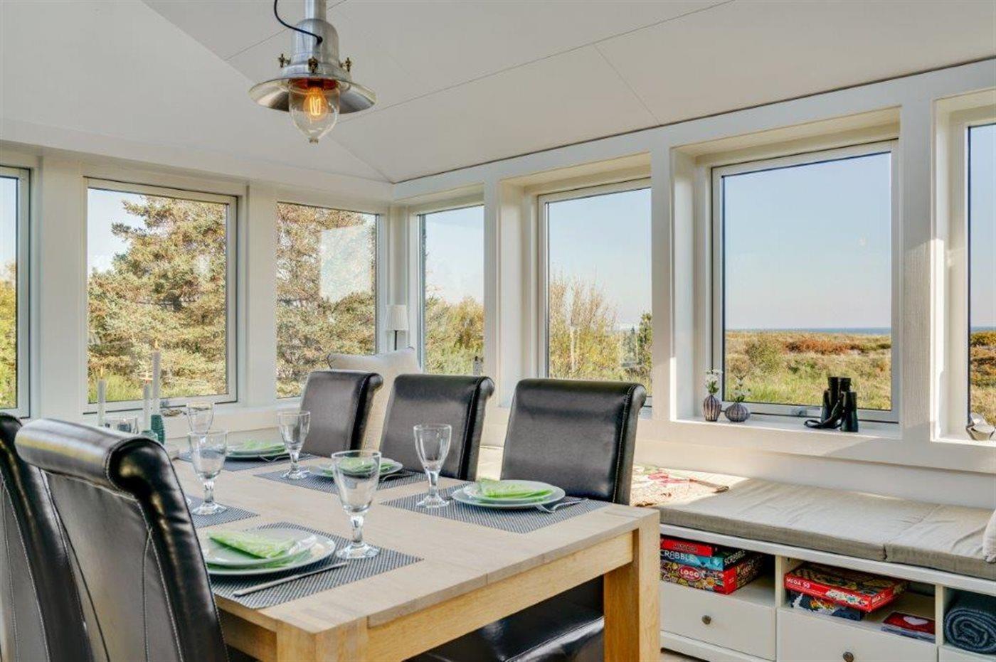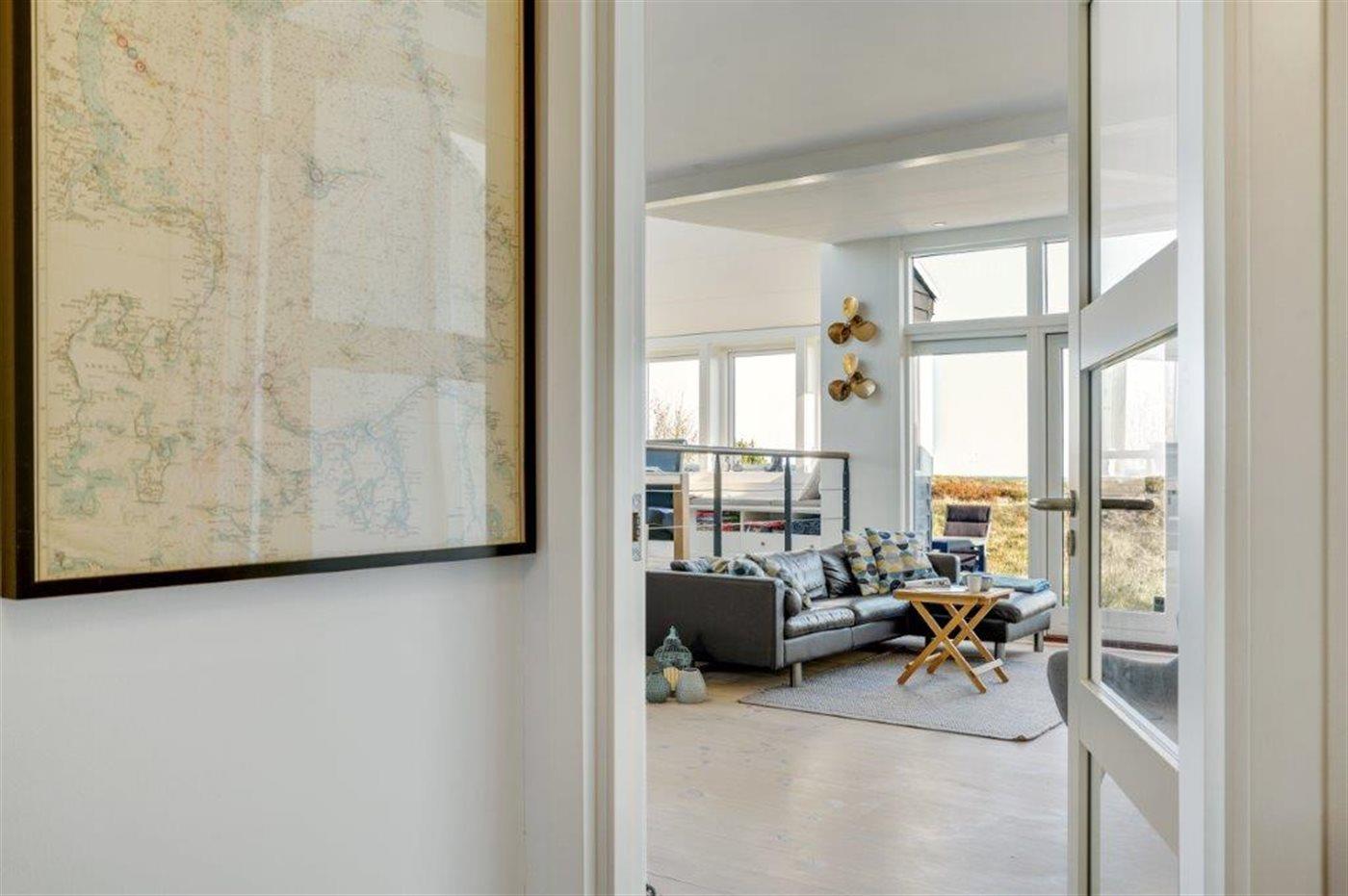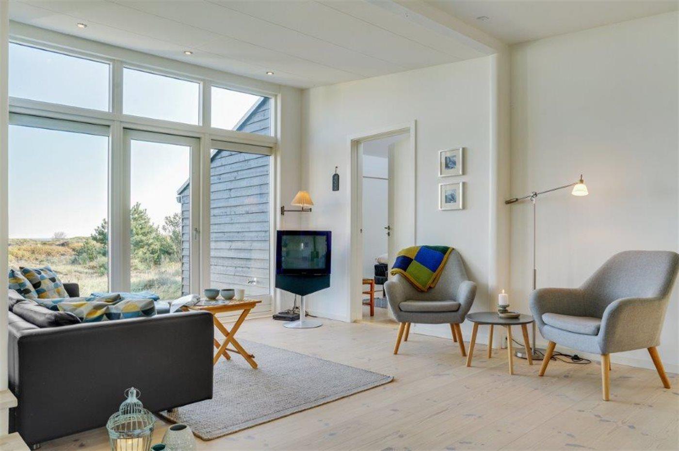 Virkelig flot og indbydende sommerhus med en enestående udsigt til Kattegat, fra både spisestue, køkken, stue og den store træterrasse, der omgiver huset. Arkitekten har sørget for, at der er et smukt lysindfald i huset. Et af soveværelserne er med eget bad og toilet, og med direkte adgang ud til terrassen, som vender mod havet. Virkelig et dejligt sommerhus hvor man bor i et med naturen. Udenfor kan I slappe af på den store terrasse og nyde solen og havet. Der er god sandstrand og gode fangstmuligheder for lystfiskeren.