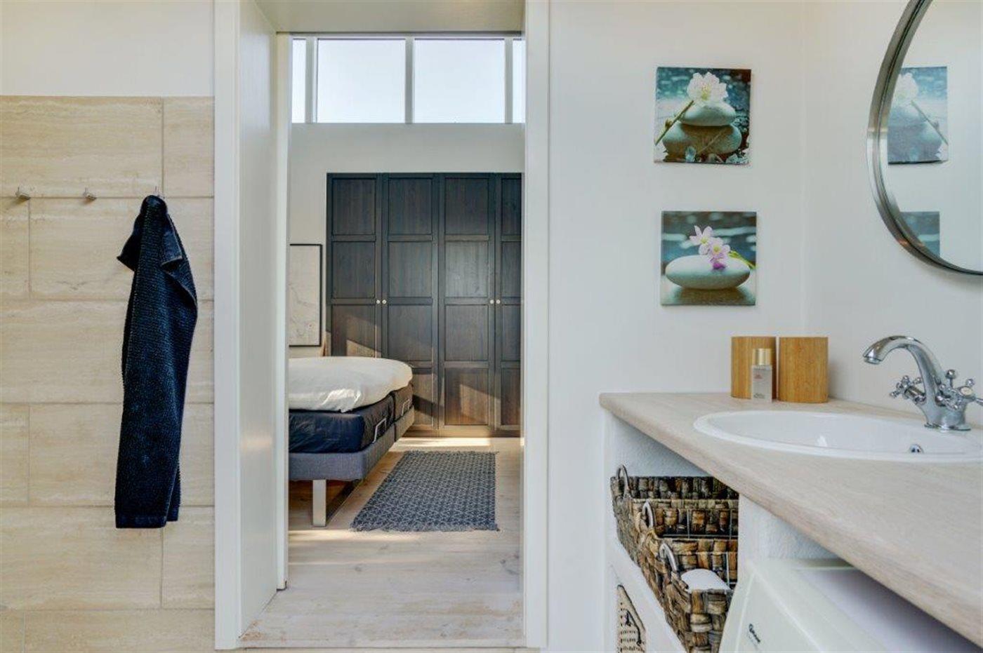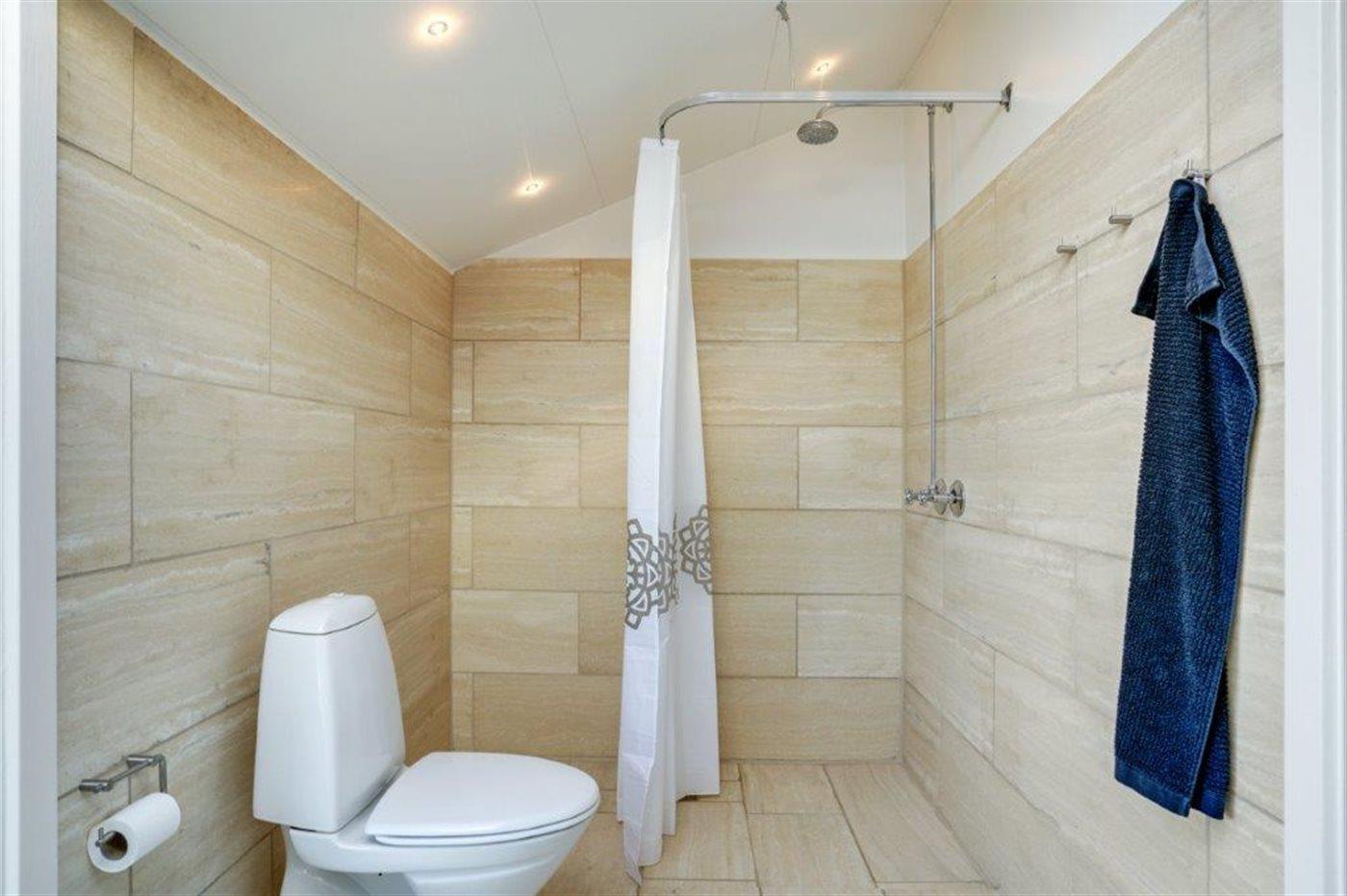 Der er 2 badeværelser med bruseniche og 2 toiletter. Der er gulvvarme på 2 badeværelser.