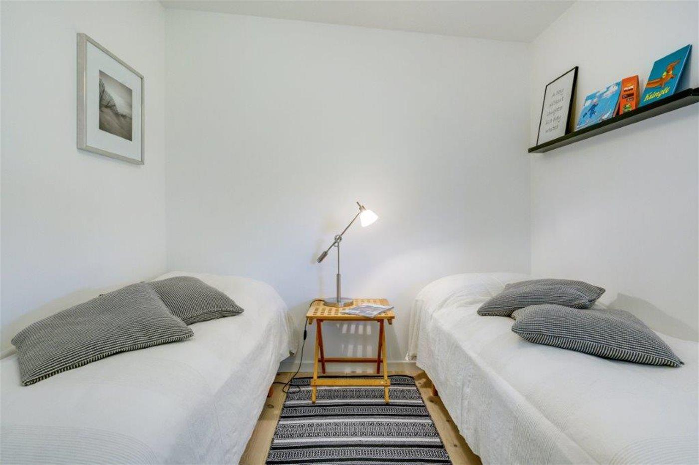 Der er i alt 3 soveværelser. Sovepladserne fordeler sig på: 4 sovepladser i dobbeltsenge. 2 sovepladser i enkeltsenge.