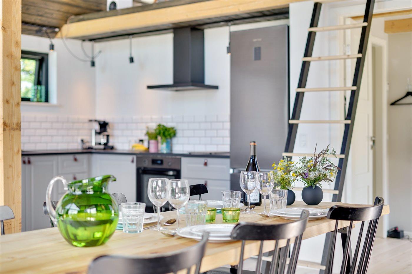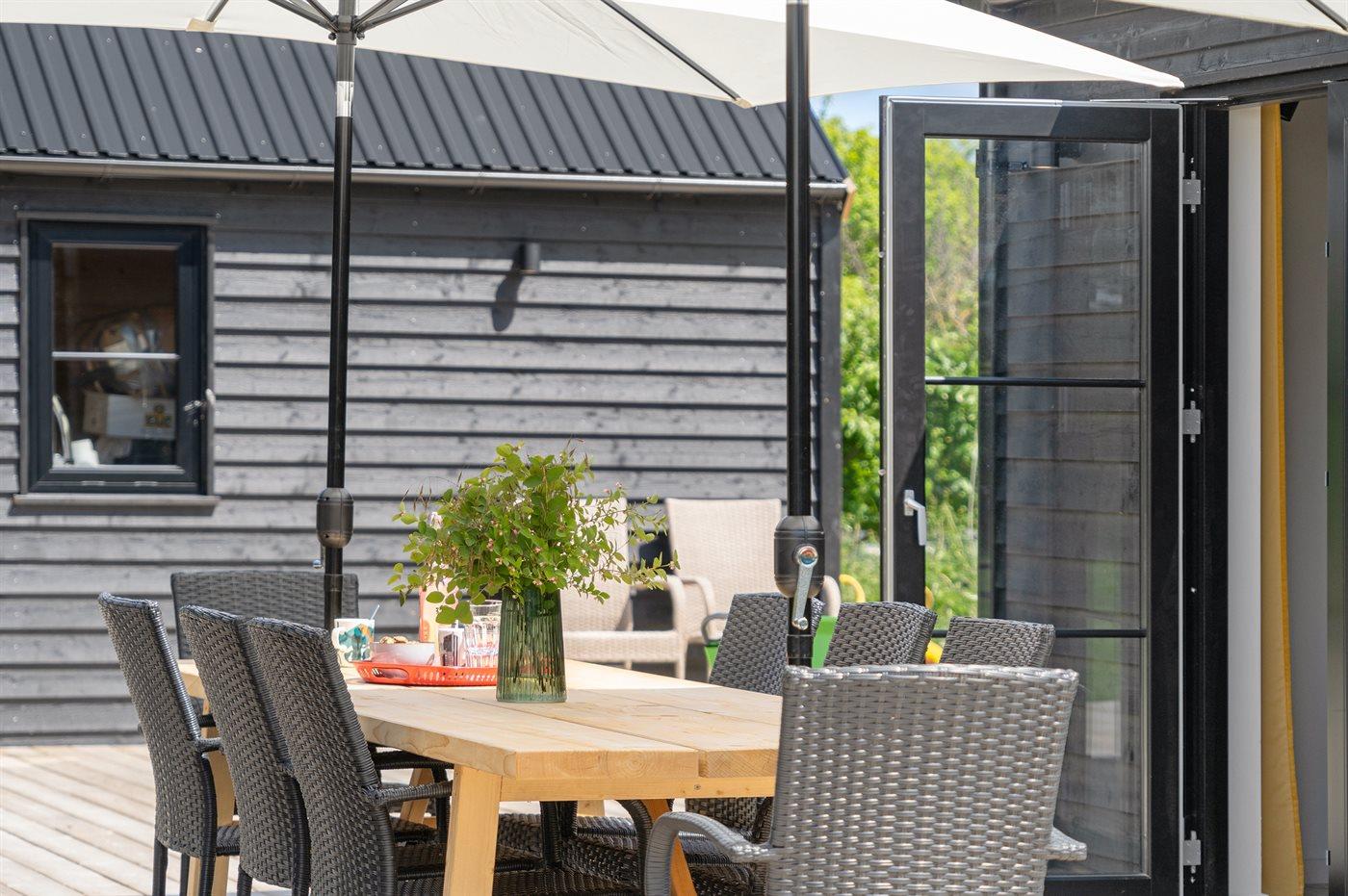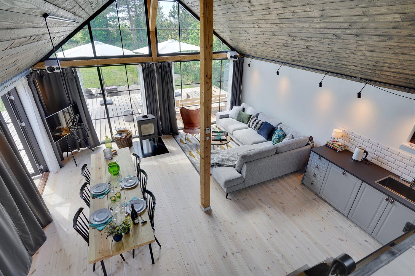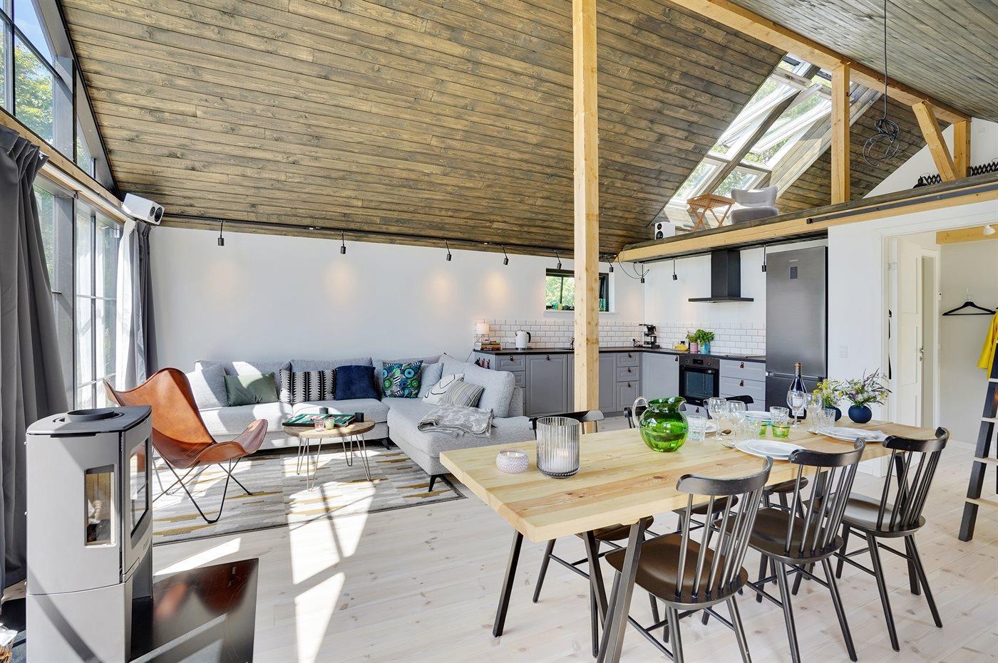 Dette sommerhus fra 2022 rummer de helt ideelle betingelser for en hyggelig og afslappende ferie med familien eller gode venner. Huset er moderne og velindrettet og med masser luft og lysindfald i bedste skandinaviske stil. Hjertet i huset er det åbne opholdsrum med køkken, spiseplads og stue ud i ét.