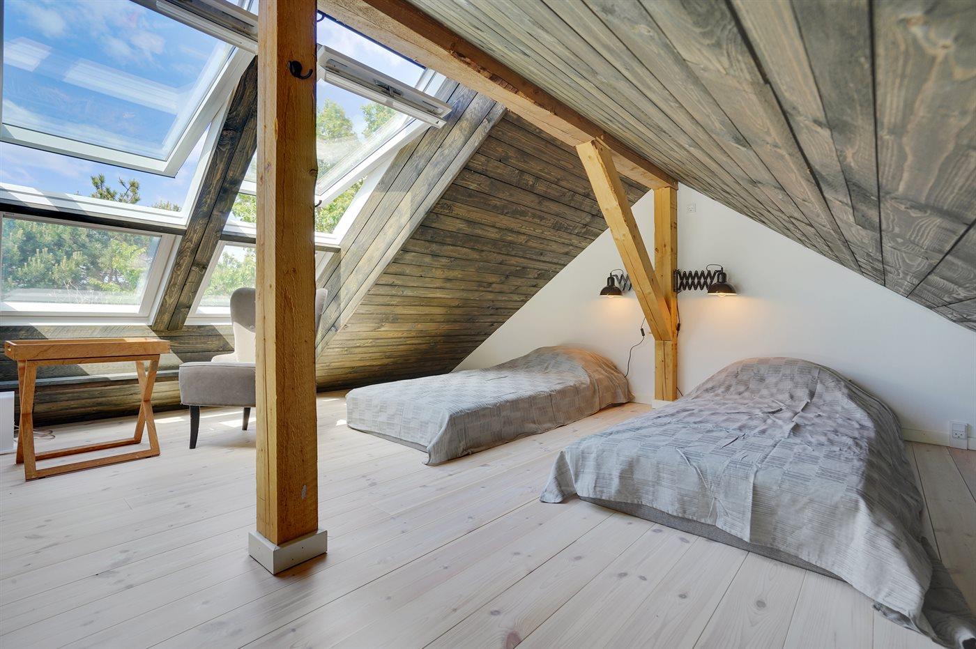 I selve huset er der 1 soveværelse med dobbeltseng samt to sovepladser på den høje hems. I annekset med eget badeværelse er der 2 soveværelser med henholdsvis dobbeltseng og dobbelt sovesofa. Dobbeltsengene består af to sammensatte enkeltsenge med forskellig hårdhed.