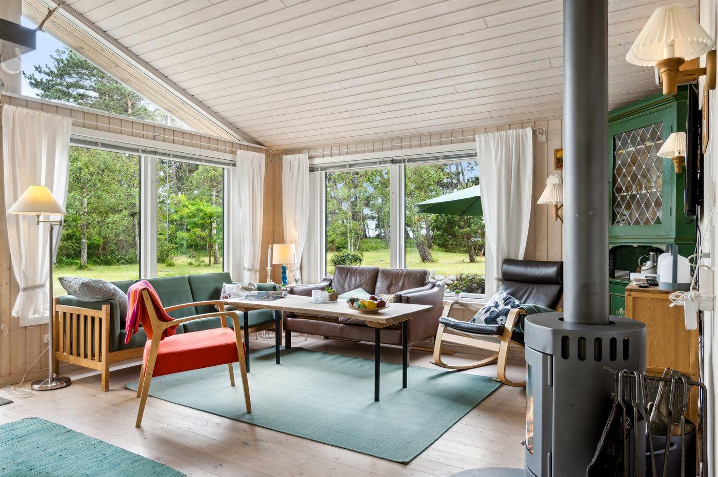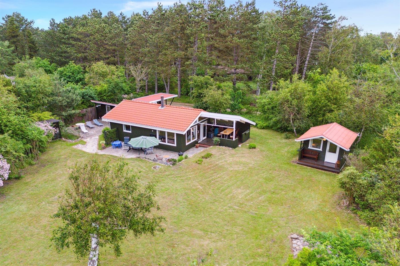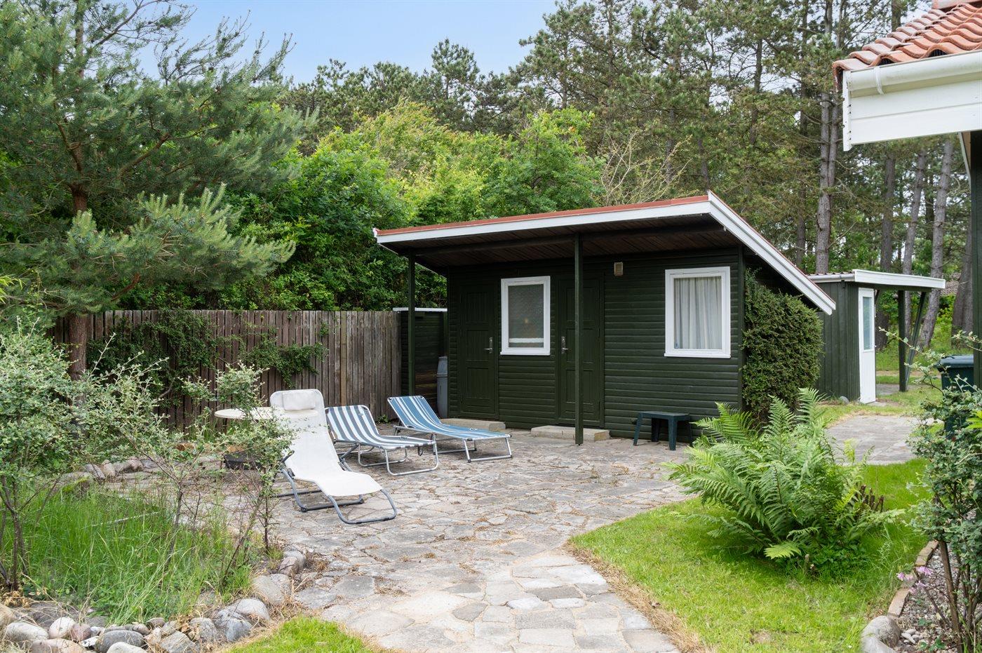 Huset indeholder et dejligt køkkenalrum i åben forbindelse med stuen, og herfra er udgang til terrasseområdet. I selve huset er der 1 soveværelse med dobbeltseng samt en dobbelt sovesofa i stuen. I annekset er en køjeseng med 3 sovepladser. Annekset ligger cirka 10 meter fra huset. Badeværelset er med bruseniche, gulvvarme og der er vaskemaskine.