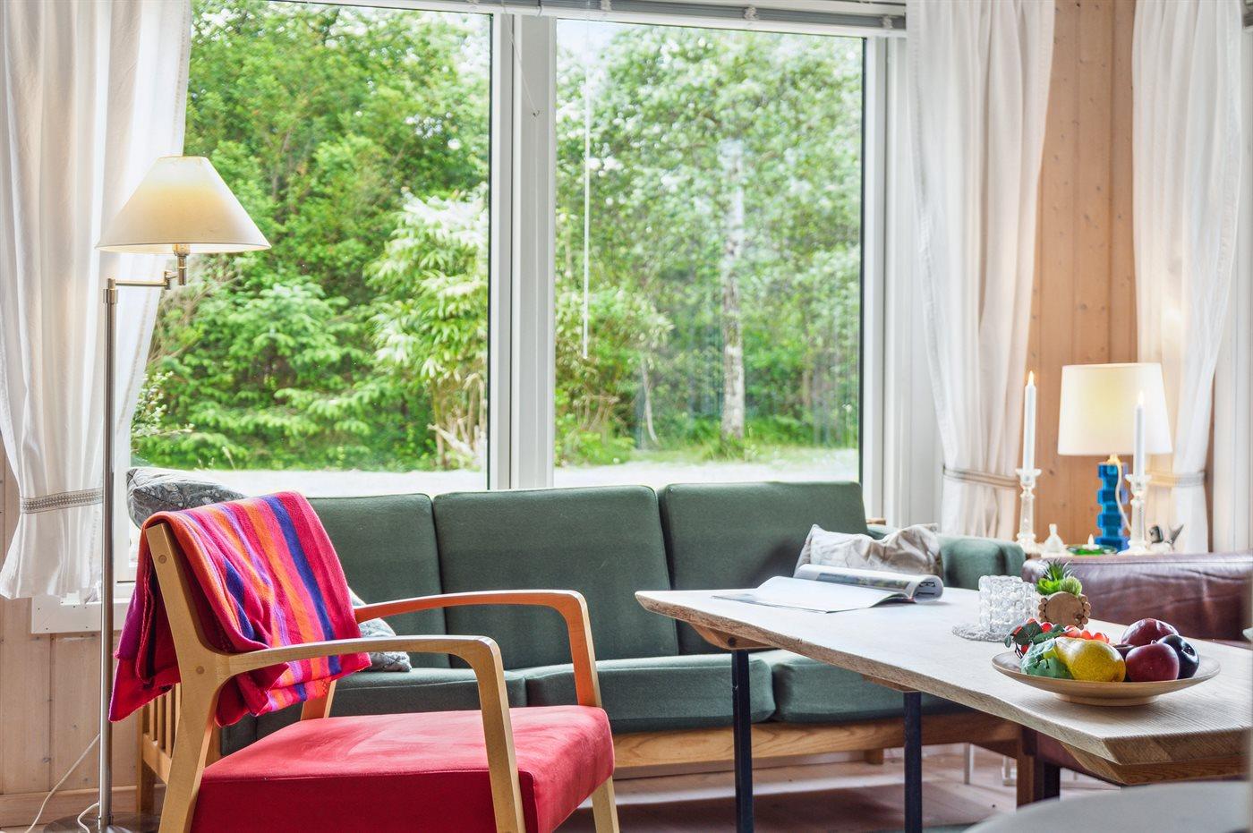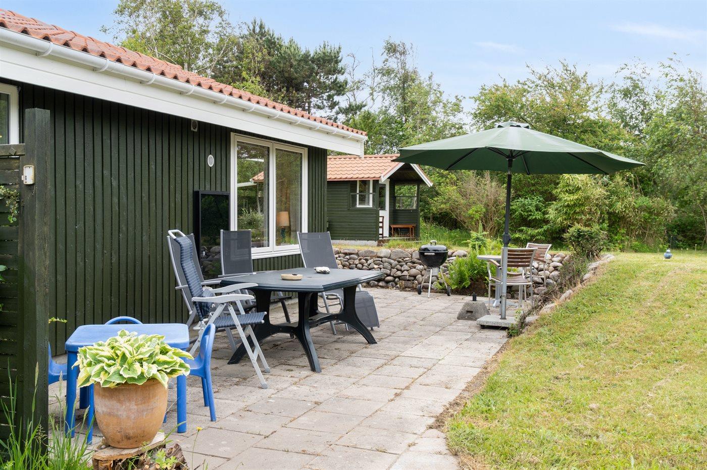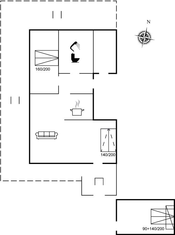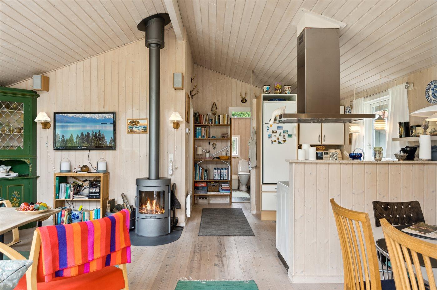 Huset indeholder et dejligt køkkenalrum i åben forbindelse med stuen, og herfra er udgang til terrasseområdet. I selve huset er der 1 soveværelse med dobbeltseng samt en dobbelt sovesofa i stuen. I annekset er en køjeseng med 3 sovepladser. Annekset ligger cirka 10 meter fra huset. Badeværelset er med bruseniche, gulvvarme og der er vaskemaskine.