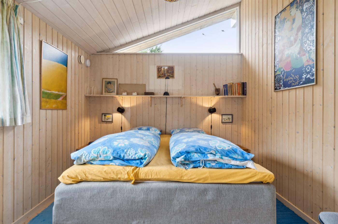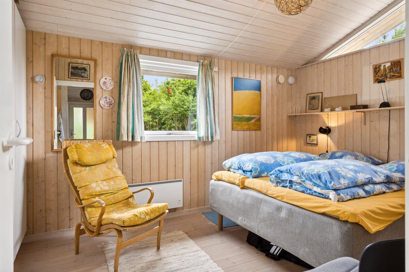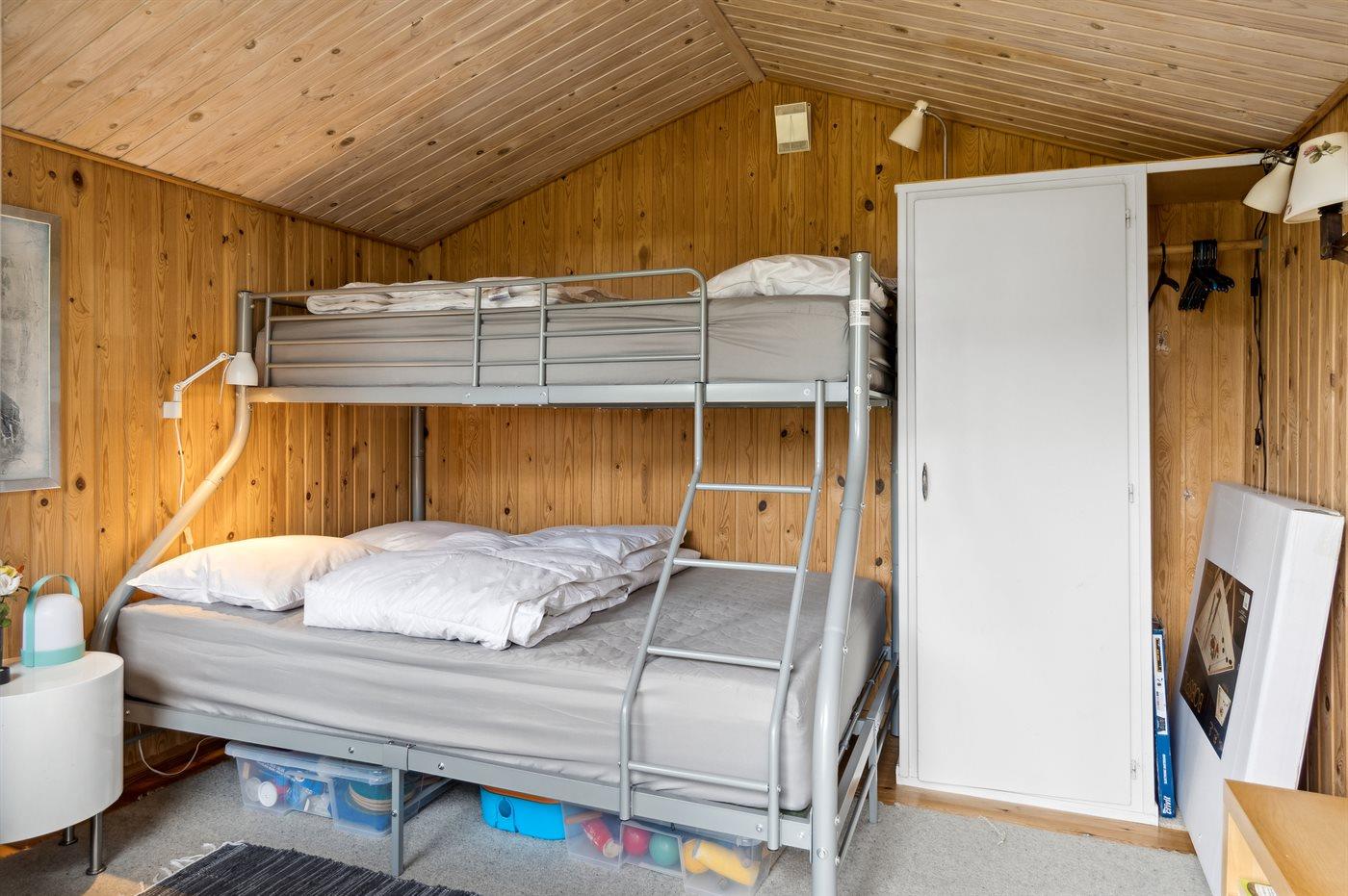 Der er i alt 2 soveværelser. Sovepladserne fordeler sig på: 2 sovepladser i dobbeltseng. 3 sovepladser i køjesenge. 2 sovepladser i sovesofa (dobbelt). 3 af disse sovepladser befinder sig i anneks og 2 i sommerhusets stue. Derudover er der 1 stk. barneseng.