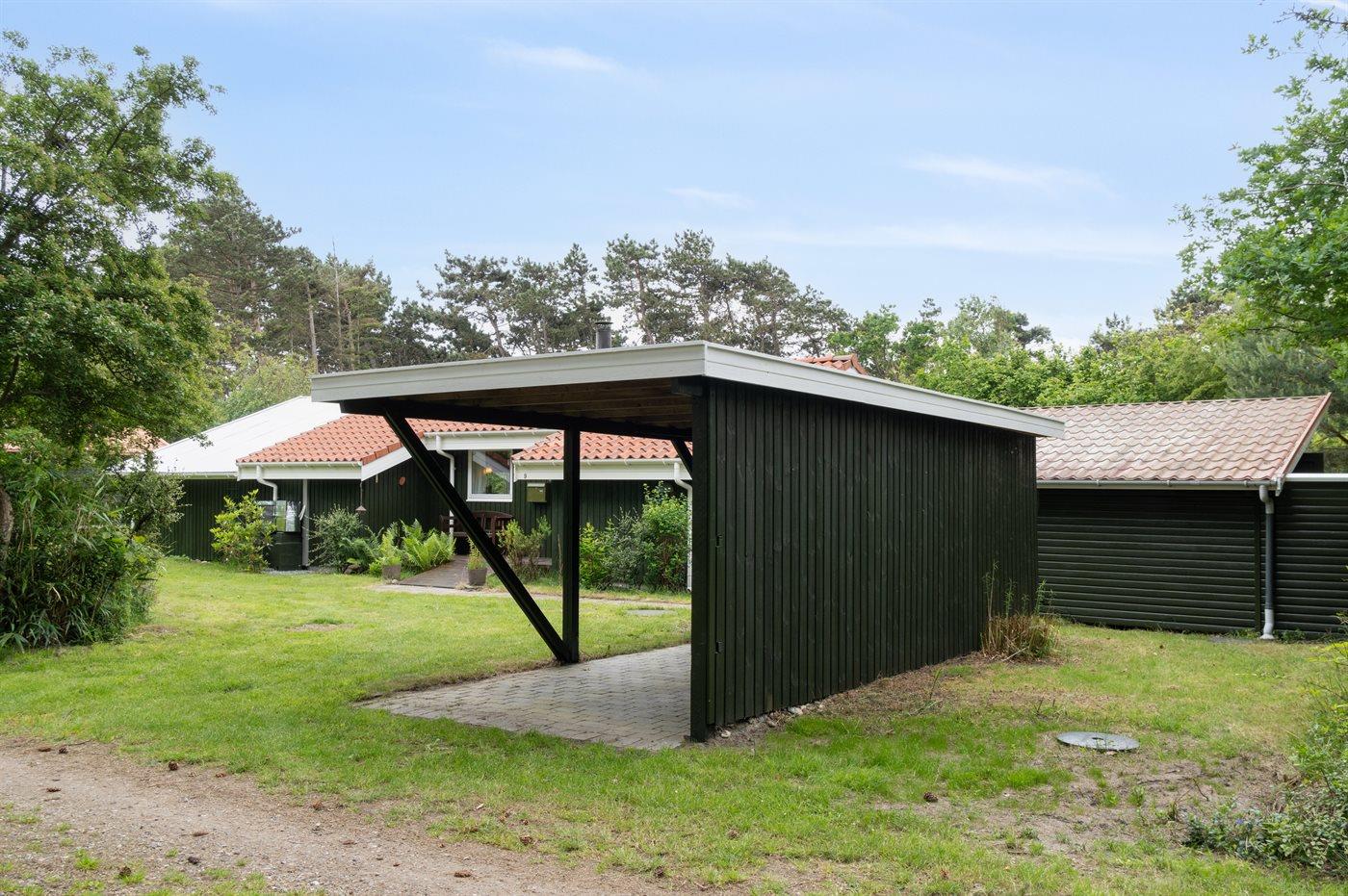 Der er carport til bilen og lademulighed for elbiler i krydset Oddenvej/Gnibenvej kun 1300 meter fra huset.