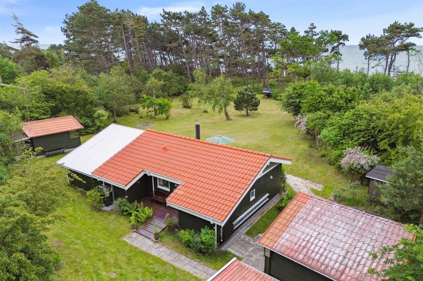 Hyggeligt sommerhus i 1. række ved havet på Sjællands Odde med havudsigt og stor naturgrund.