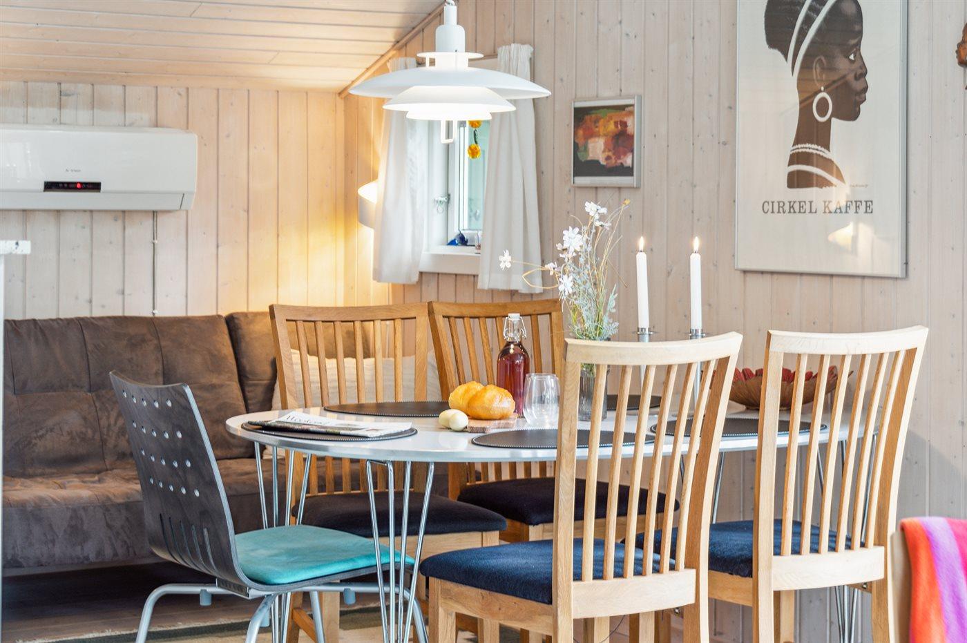 Sommerhuset egner sig til 6 personer. Ferieboligen er på 77 m² og er bygget i 2000. Det er tilladt at medbringe 2 husdyr. Ferieboligen er udstyret med 1 energivenlig luft til luft varmepumpe. Ferieboligen er udstyret med energibesparende luft til luft varmepumpe. Der er gulvvarme i alle klinkegulve. Ferieboligen har vaskemaskine. Frysekapacitet på 35 liter. Der er desuden brændeovn. Til de små er der 1 stk. barnestol.