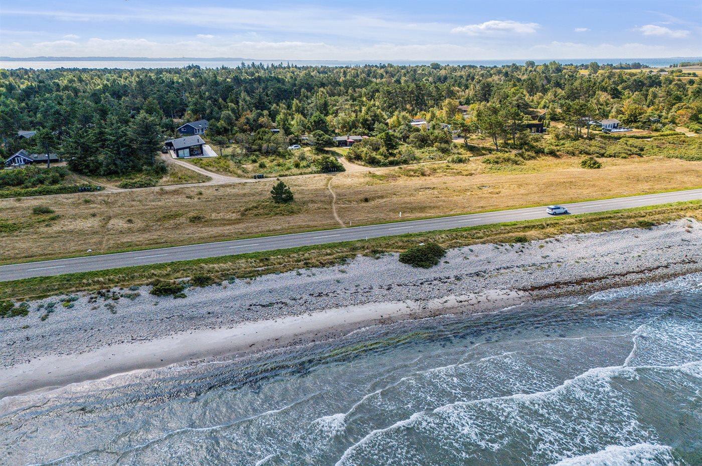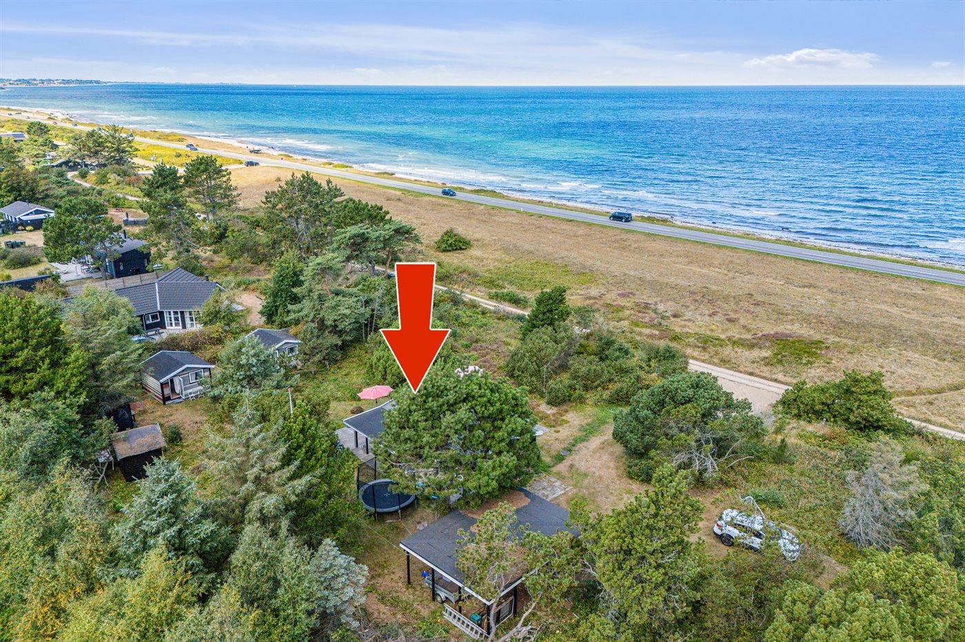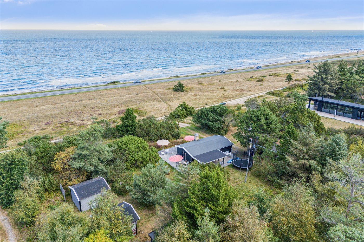 Ferieboligen er beliggende på en 2524 m² stor naturgrund. Der er 75 m til havet. Nærmeste forretning er beliggende i en afstand af 4600 m. Der er en golfbane i en afstand af 9550 m. Til ferieboligen hører 91 m² terrasseareal. Desuden er der 21 m² overdækket terrasse. Trampolin. Grill til rådighed. Der er carport til rådighed. Parkering ved ferieboligen.