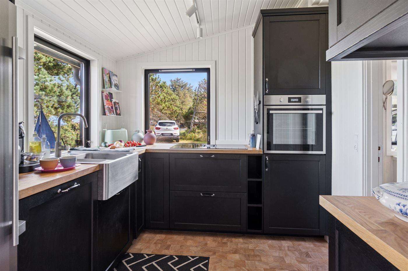 Køkkenet er udstyret med 1 køleskab. Der er 4 induktionskogeplader, varmluftovn, mikrobølgeovn samt opvaskemaskine.