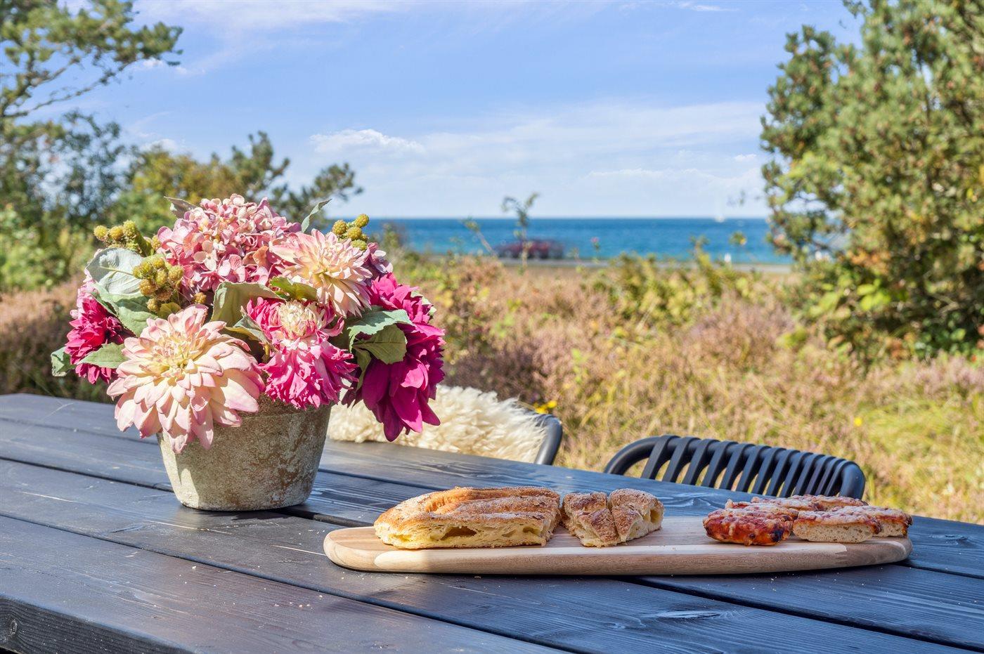 Dejligt sommerhus med havudsigt, store terrasser og naturgrund nær stranden på Sjællands Odde.