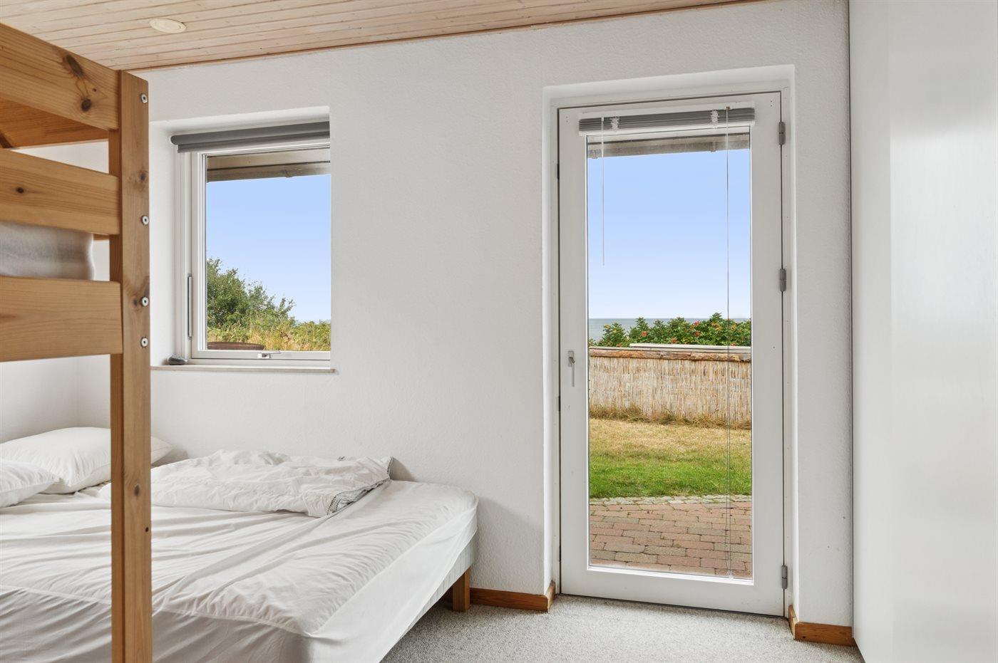 I stueplan er der 1 soveværelse med dobbeltseng og køjeseng. Der er badeværelse med gulvvarme, bruseniche og spa/badekar. Der er desuden et praktisk bryggers med vaskemaskine og tørretumbler.