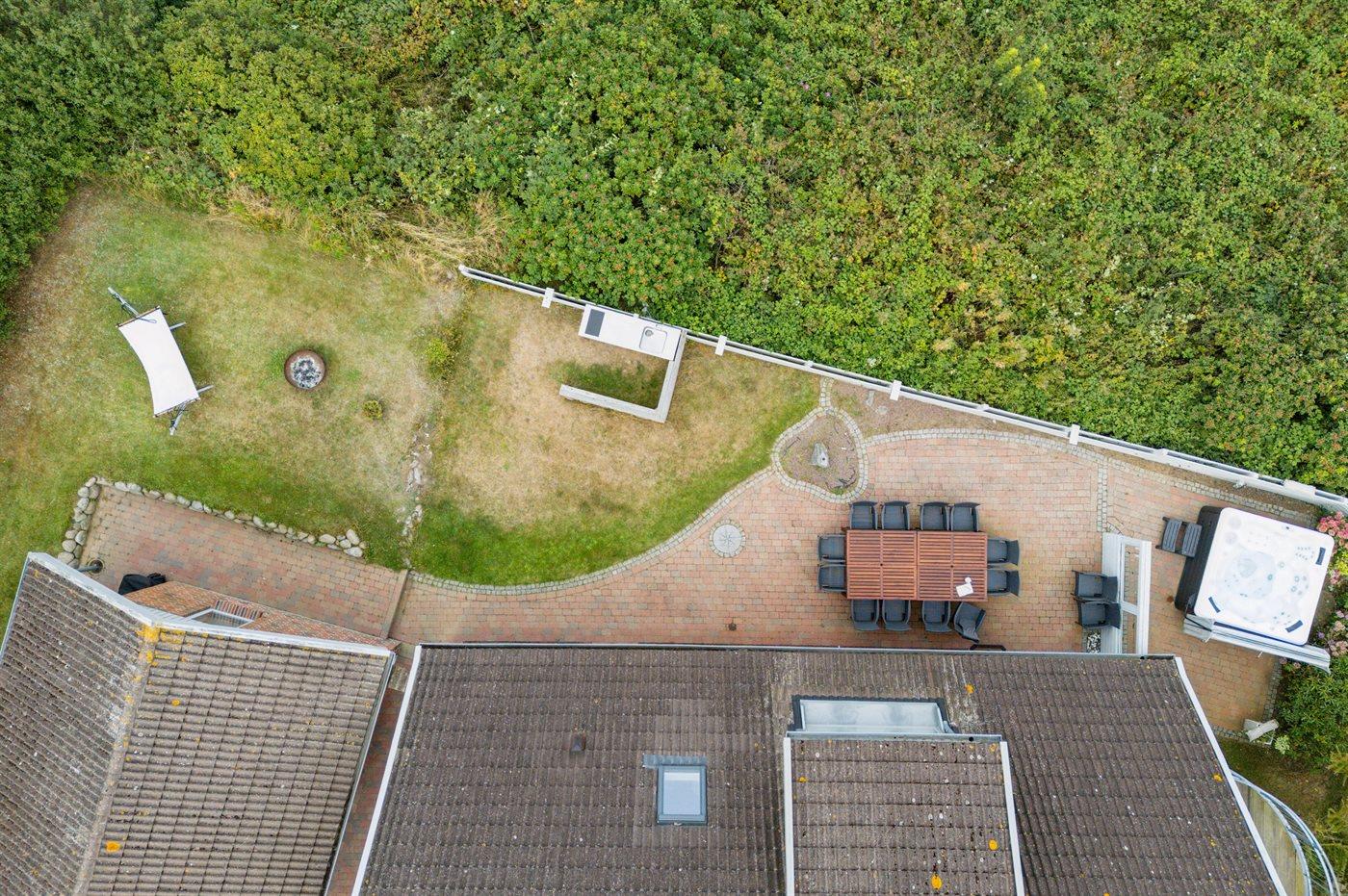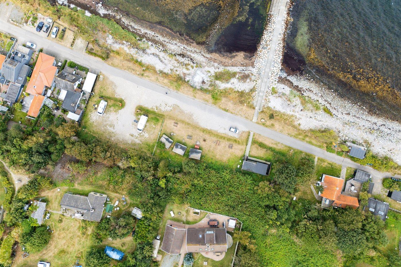Ferieboligen er beliggende på en 1486 m² stor havegrund. Der er 50 m til havet. Der er en badebro i nærheden. Nærmeste forretning er beliggende i en afstand af 525 m. Der er en golfbane i en afstand af 13800 m. Til ferieboligen hører 200 m² terrasseareal. Gynge. Sandkasse. Der er mulighed for at tilberede maden udendørs i udekøkkenet. Grill til rådighed. Der er carport til rådighed. Der er installeret stik til opladning af elbil. Type 2 stik. Med 22 kW ladeeffekt. Parkering ved ferieboligen.