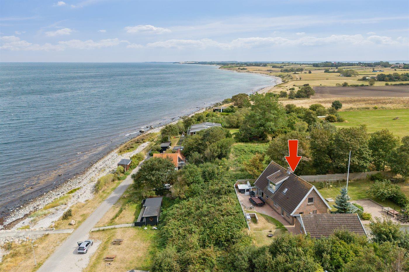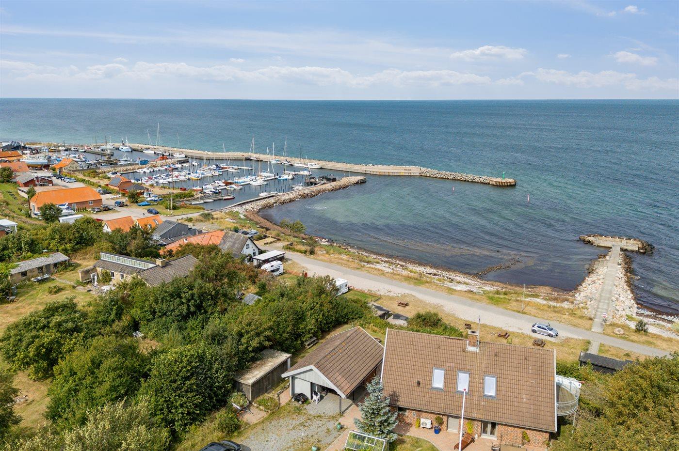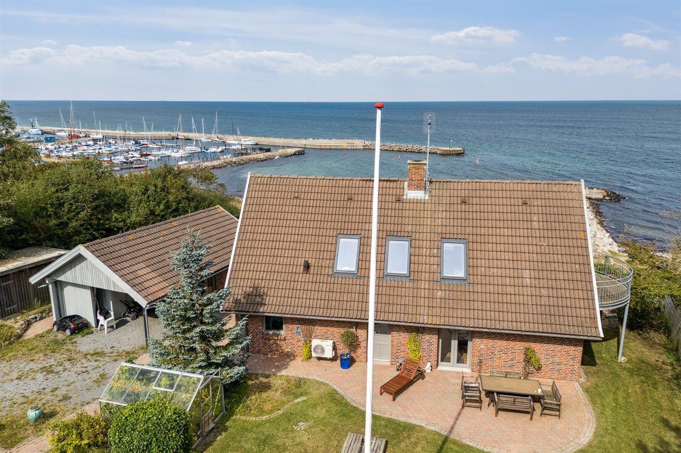Fantastisk sommerhus i første række med panoramaudsigt over havnen og havet ved Sjællands Odde.