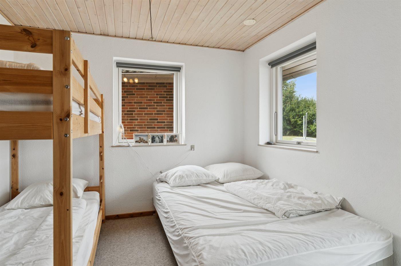 Der er i alt 3 soveværelser. Sovepladserne fordeler sig på: 6 sovepladser i dobbeltsenge. 2 sovepladser i enkeltsenge. 2 sovepladser i køjeseng. 4 sovepladser i sovesofa (dobbelt). 4 af disse sovepladser befinder sig i stuen. Derudover er der 1 stk. barneseng.