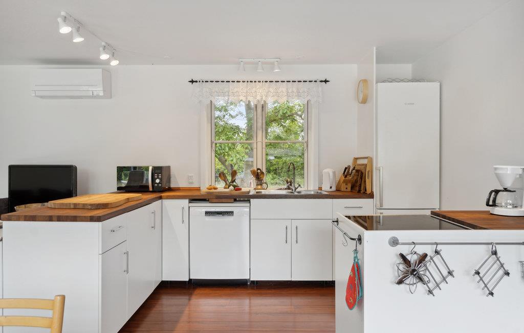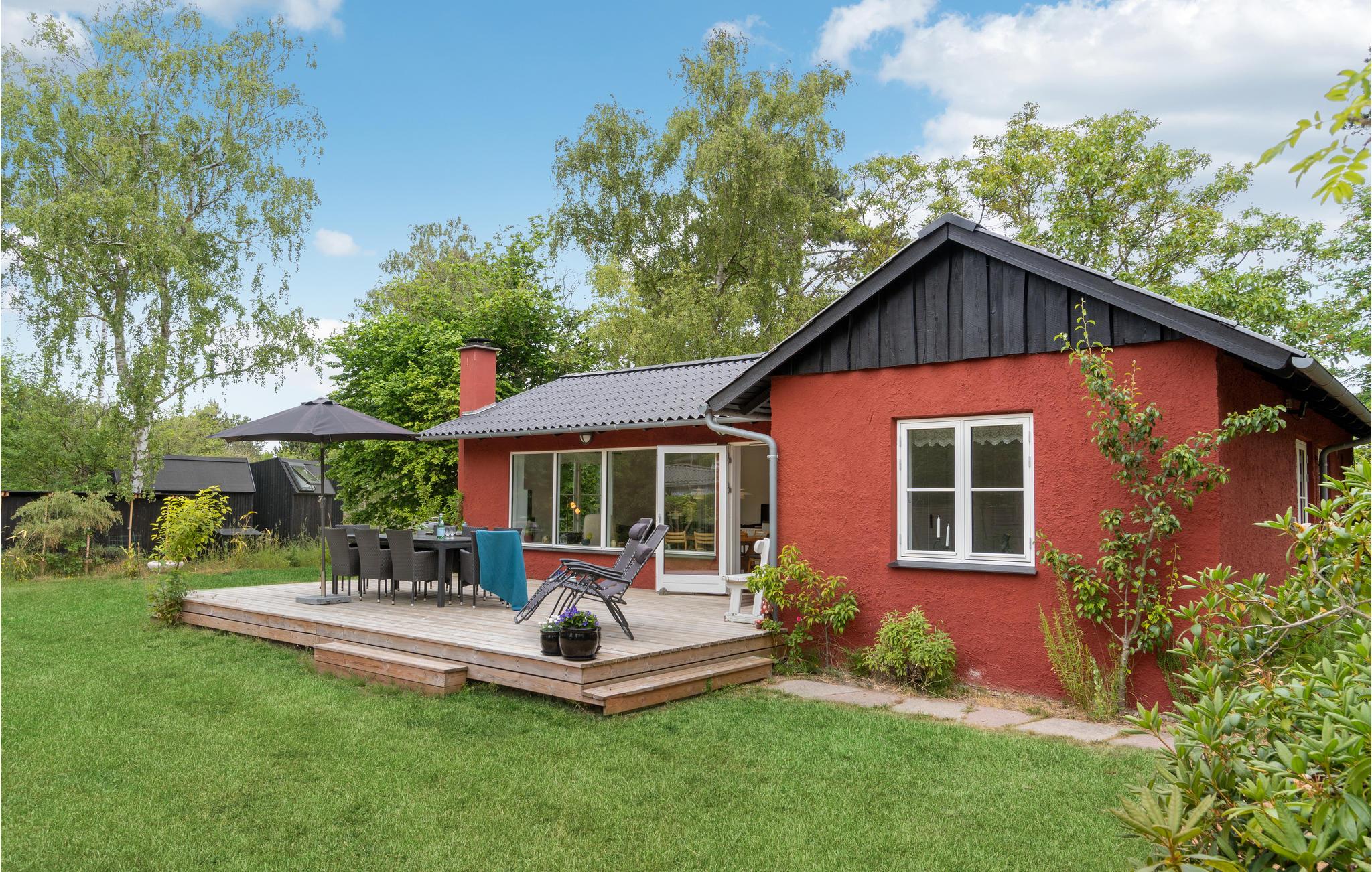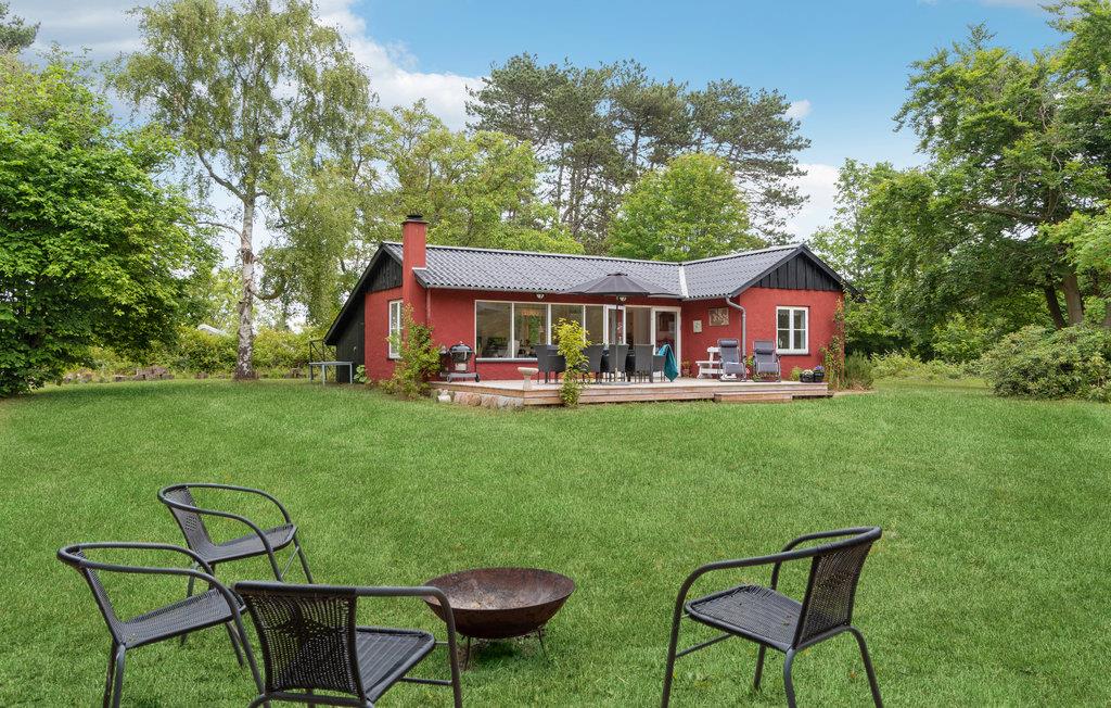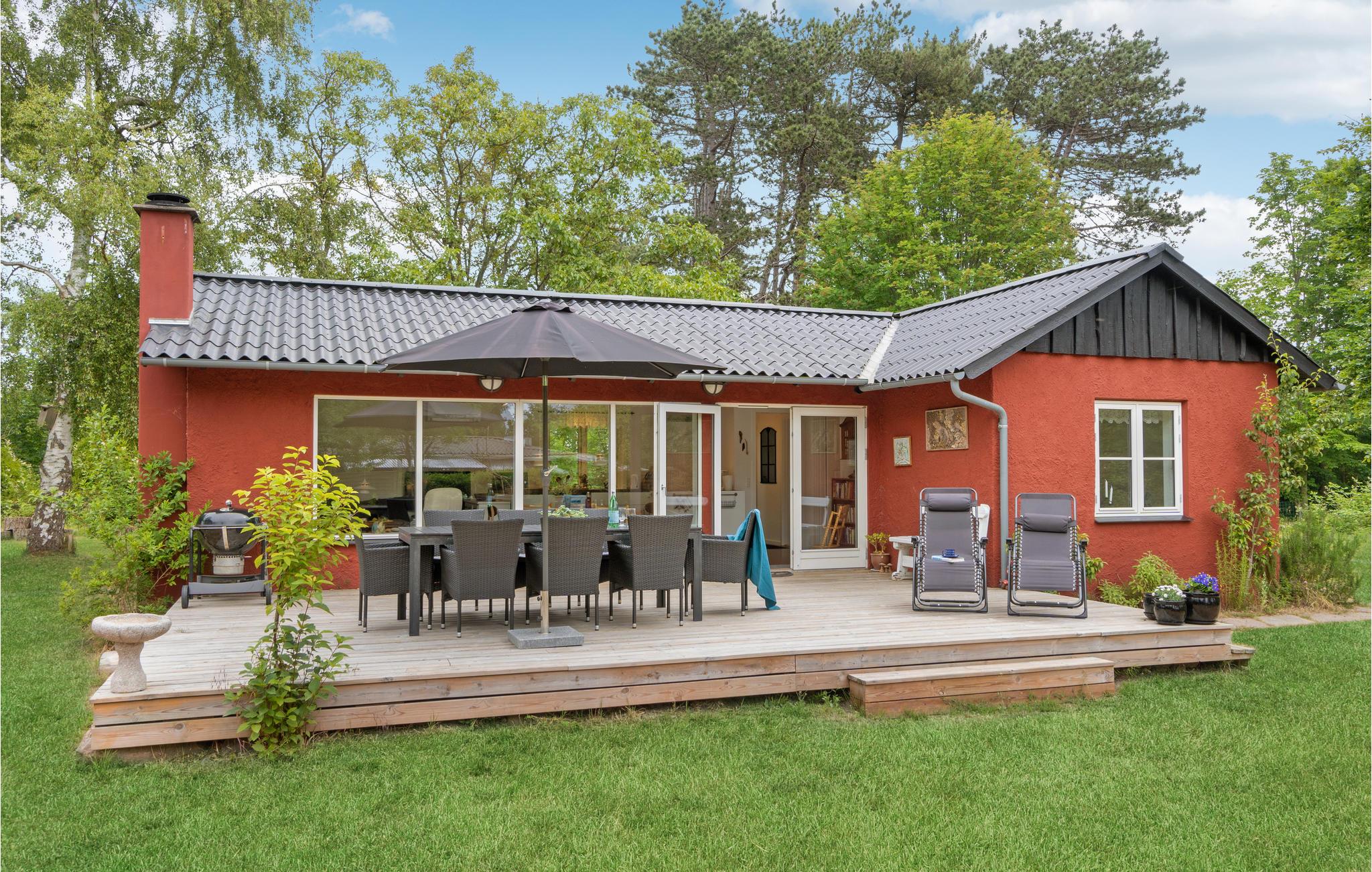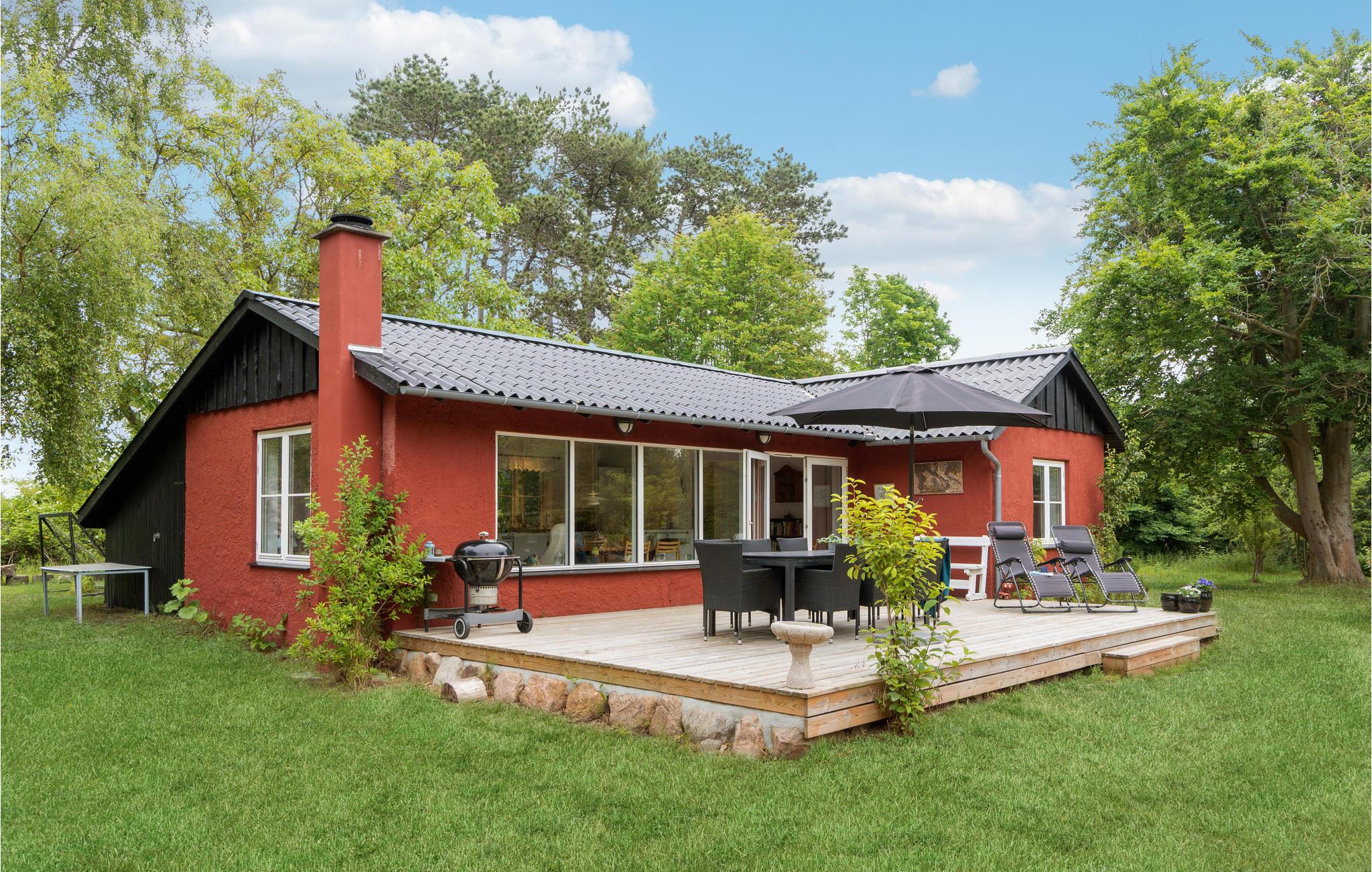 Tilbring en rolig og afslappende ferie i dette røde feriehus, omgivet af dejlige store træer. Nyd livet i fulde drag sammen med jeres børn. Her er der masser af plads til leg. Nyd atmosfæren med den hyggespredende brændeovn og lav lækre måltider i det åbne køkken. Huset er veludstyret, så I kommer ikke til at mangle noget. De store vinduer giver et dejligt lysindfald. Træd ud på træterrassen om morgenen med en dampende kop kaffe og se jeres børn løbe rundt på græsplænen. Flyt måltiderne ud på terrassen og mærk, hvordan skuldrene kommer ned. I den skønne frodige have med mange træer er der gode gemmesteder og perfekte forhold til fangeleg og fodbold. Huset har en fantastisk beliggenhed nær stranden og gode fiskesteder.