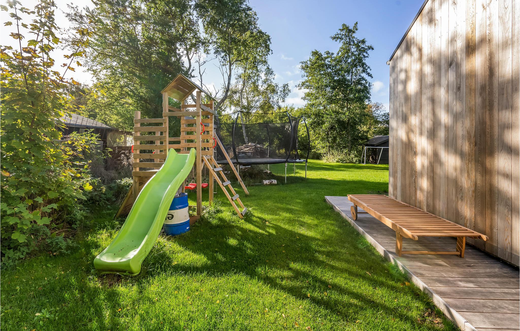 Der er masser af plads til udendørs aktiviteter på den åbne naturgrund. Forbered måltider sammen i udekøkkenet og tilbring lange aftener omkring lejrbålet. Børnene finder en gynge, sandkasse og rutsjebane her. I kan gå til stranden fra feriehuset, hvor I kan tilbringe en vidunderlig tid om sommeren og vinteren.