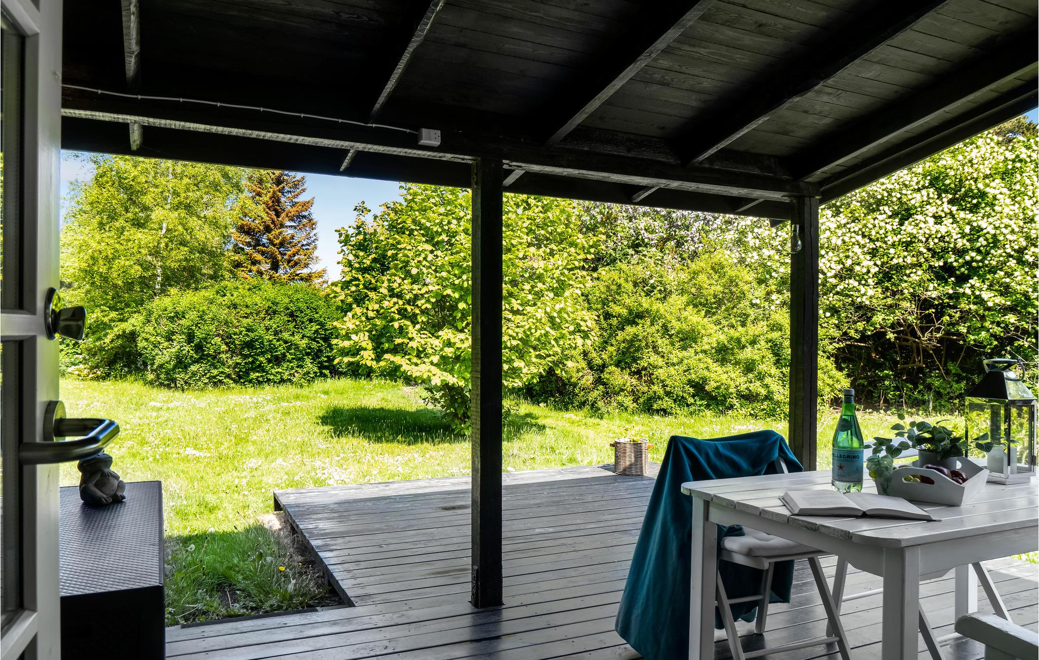 Huset ligger på en stor, beskyttet naturgrund, som vil være en oase for sjove timer med leg eller afslapning under ferien. På de overdækkede terrasser kan I selv i sommerregn nyde jeres middag i det fri med den bløde lyd af dråbernes rytme i baggrunden.