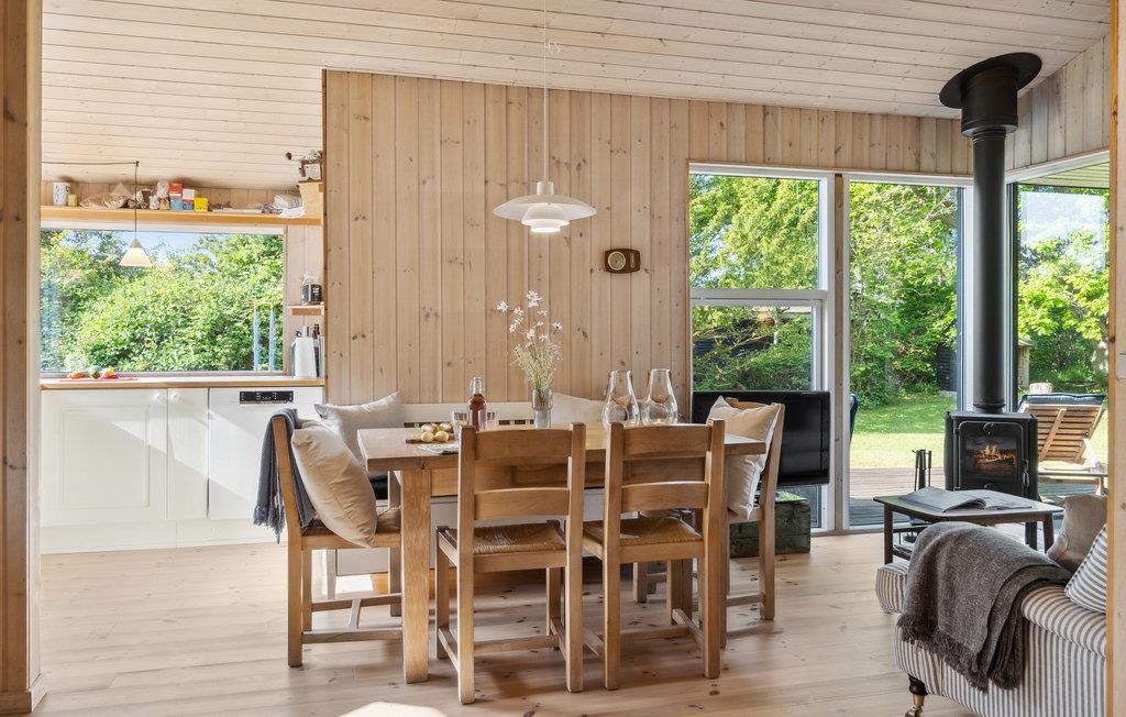 Dette dejlige hus er tæt på havet og skøn natur, som byder på et væld af oplevelser, herunder badesjov, fiske- og vandreture og kulturperler. De indbydende, lyse rum byder på en varm atmosfære, store vinduer og ægte sommerhuscharme. Her kan I slappe af og komme helt ned i gear. Sæt jer godt til rette med en film eller et spil og nyd ferieaftenerne, mens flammerne i brændeovnen spreder hygge. Træd ud af opholdsstuen og ud på terrassen og i haven, hvor der er masser af plads til at boltre sig. Nyd en sjov picnic under træerne og afslut dagen med grillmad, koldskål og snobrød.