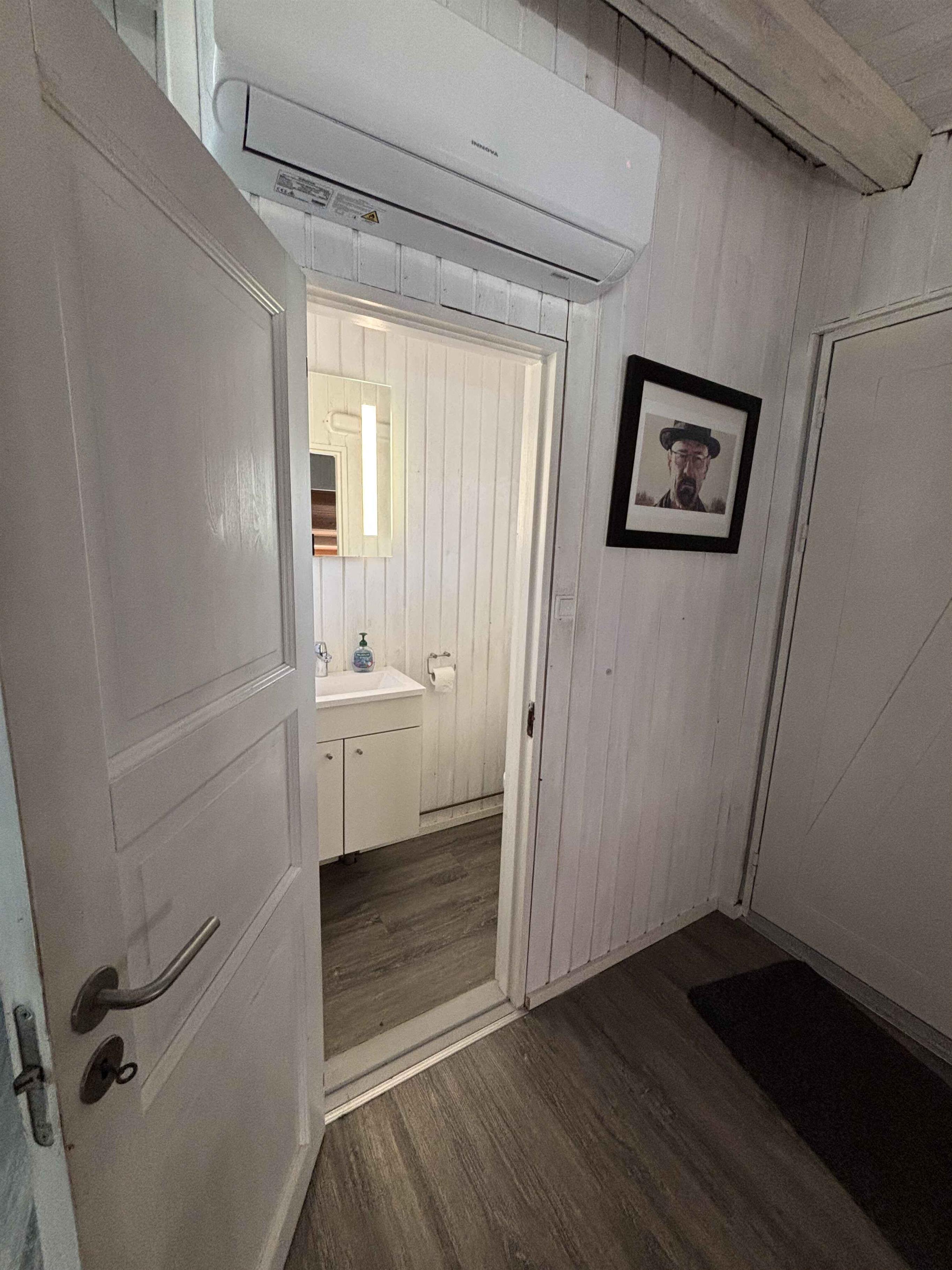 Lyst og hyggeligt sommerhus kun 300 meter fra vandet med stor udestue og indhegnet have.