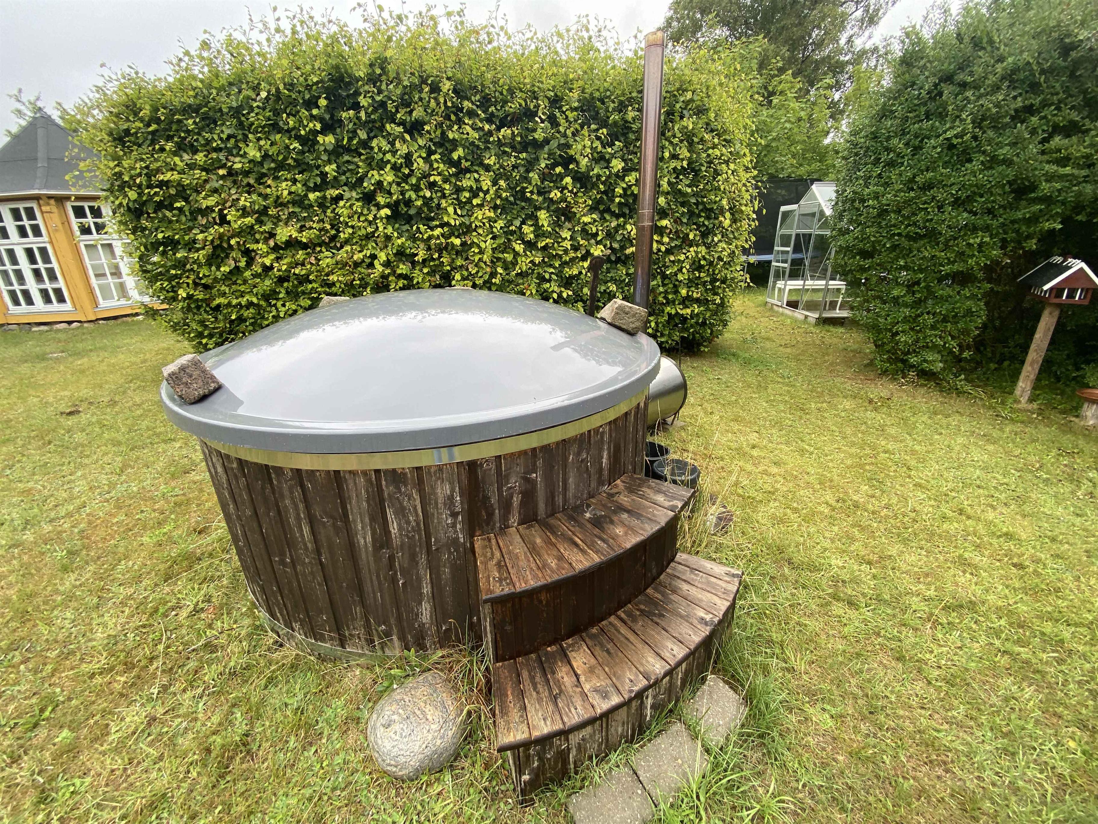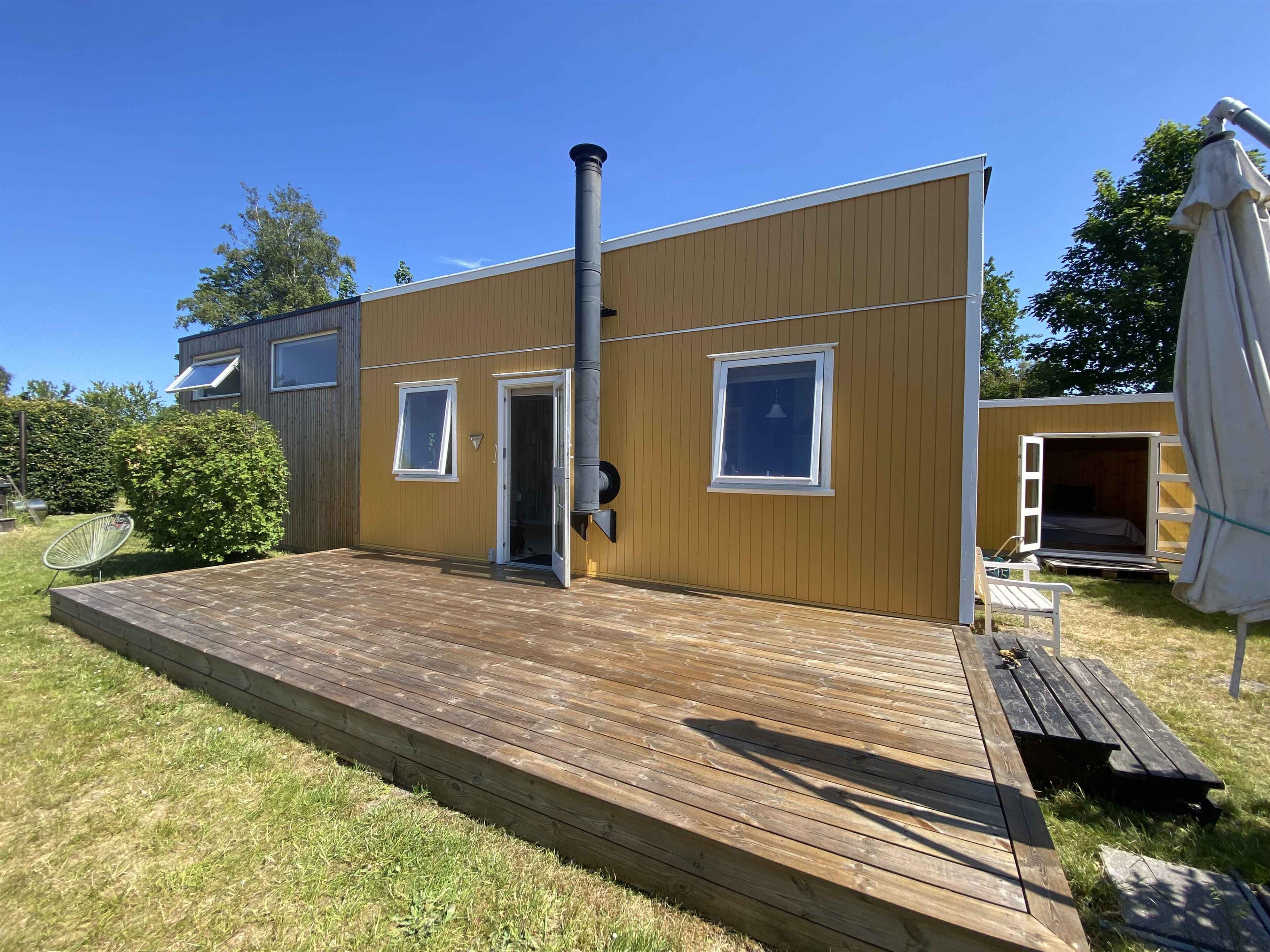 Hyggeligt sommerhus tæt på stranden i Sjællands Odde med vildmarksbad og dejlig træterrasse for afslapning.