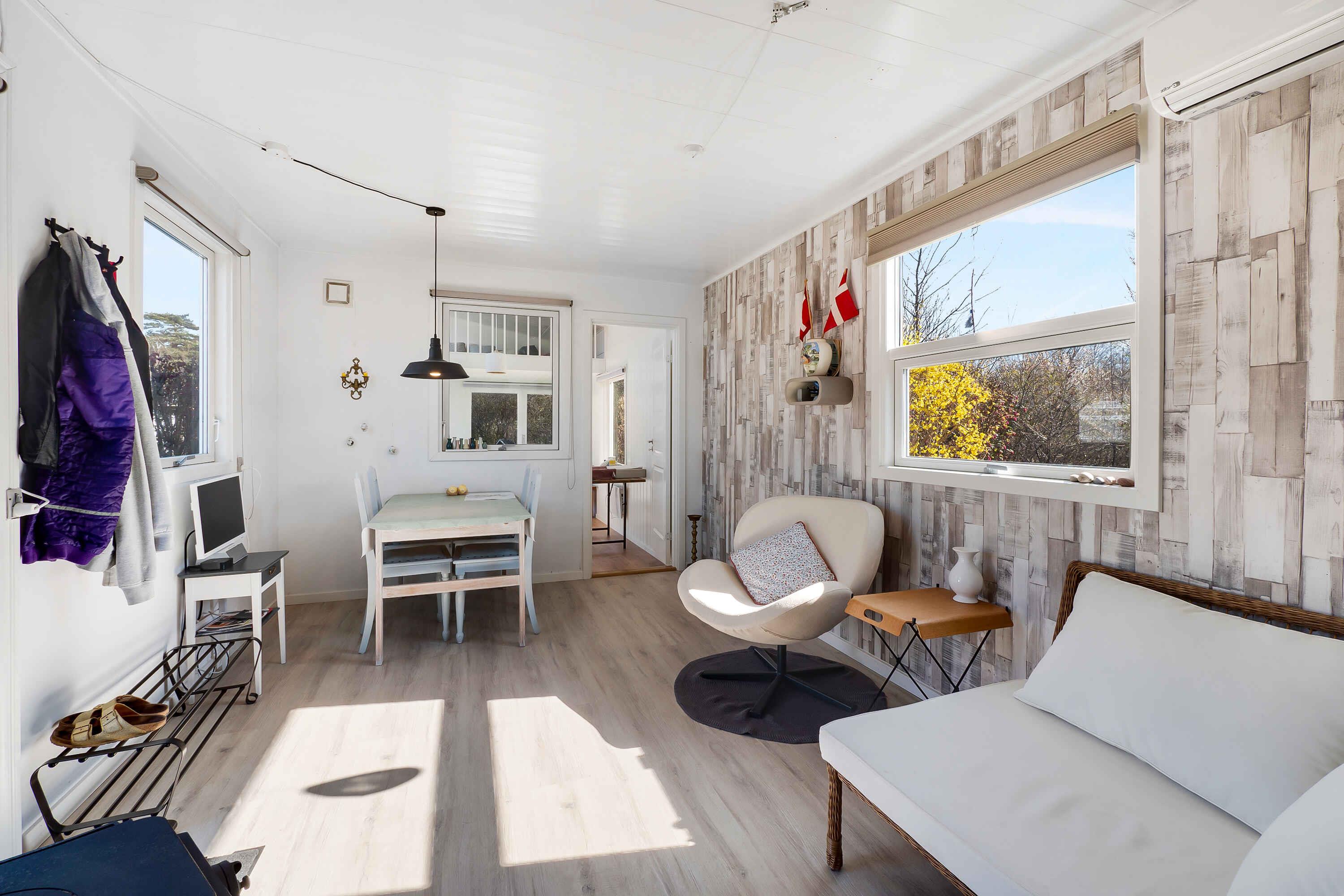 Hyggeligt sommerhus på Odden ?? Denne skønne oase af et sommerhus oser af ro, idyl og afslapning med kvalitetstid for hele familien. Huset er beliggende nær strand, havneby med havnebyens fisk og kaffebar, Olgas café, pop-up bager, Birkemosegaard og nær færgen til/fra Aarhus. Om morgenen, når I vågner, er der ikke mere en kort morgenkåbeafstand ned til vandet, hvor en forfriskende dukkert eller en dejlig gåtur langs vandet venter. Herefter venter vildmarksbadet, hvor I kan få dejlig varme i kroppen og ro i sjælen. ?? Huset er renoveret med en tilbygning og anneks og indeholder nu et stort soveværelse med hems med plads til 4 og et dejligt isoleret anneks med plads til 2 voksne og 2 børn. Plads til 6 personer i alt. Hertil råder huset over et toilet med bruseniche, funktionelt køkken samt en hyggelig stue med brændeovn. Der er her lagt op til masser af sommerhus-råhygge for dig og familien uanset hvad I finder på. ?? Der er en dejlig træterrasse med sol det meste af dagen samt et overdækket område, hvor udelivet kan nydes på trods af lidt regn eller lavere temperaturer. Grunden er 1200 M2 med masser af hyggekroge og plads til udfoldelse. Der er vildmarksbad, gynger, trampolin, lysthus, bålplads og forskellige ude-spil. I kan ofte se rådyr og harer løbe over grunden i de tidlige morgen eller aften timer. Olgas ligger 1 km fra sommerhuset, Superbrugsen ligger i Havnebyen (4 km) og Rema1000 i Lumsås (10 km) og har I brug for lidt liv, findes både Rørvig havn og Nykøbing Sj. indenfor 20-25 km. Det tager en time at komme ind til stor København og 1 1/2 time til Århus med færgen.
