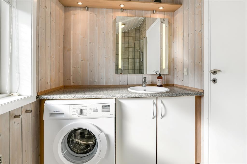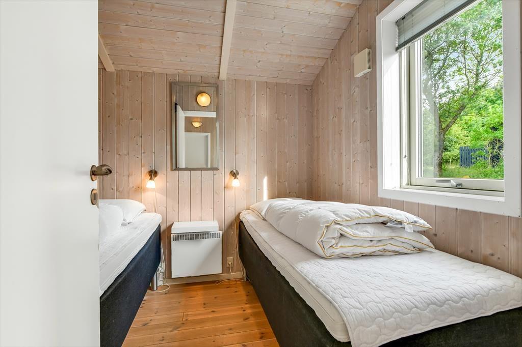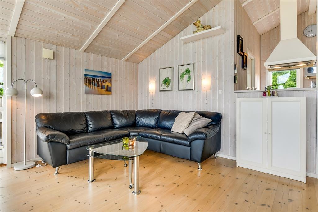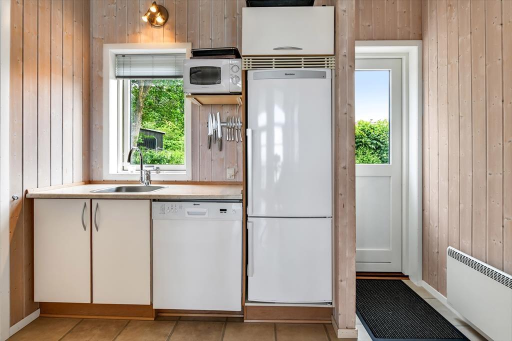 De naturskønne omgivelser er kun én af flere gode grunde til at holde ferie på Sjelborgdalen 22, for med sin velproportionerede planløsning og lyse, venlige atmosfære er sommerhuset i sig selv en attraktiv feriebolig. Der er to dejlige soveværelser og et pænt brusebadeværelse at gøre godt med, og centralt i huset ligger køkken og stue i åben forbindelse. Både sofaen og lænestolene indbyder til at nyde dagene i roligt tempo med en spændende bog og en varm kop kaffe – og hvis du vil spille kort eller nyde et lækkert måltid med dine kære, kan I sætte jer ved spisebordet, der er placeret lige ved stuevinduerne, så I kan nyde sollyset og det smukke landskab.