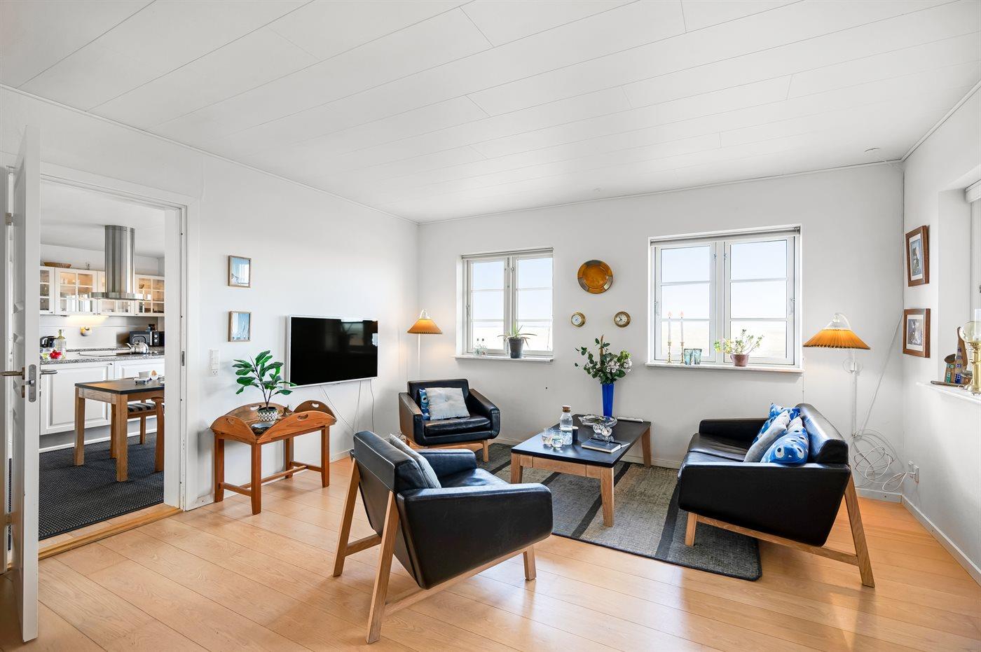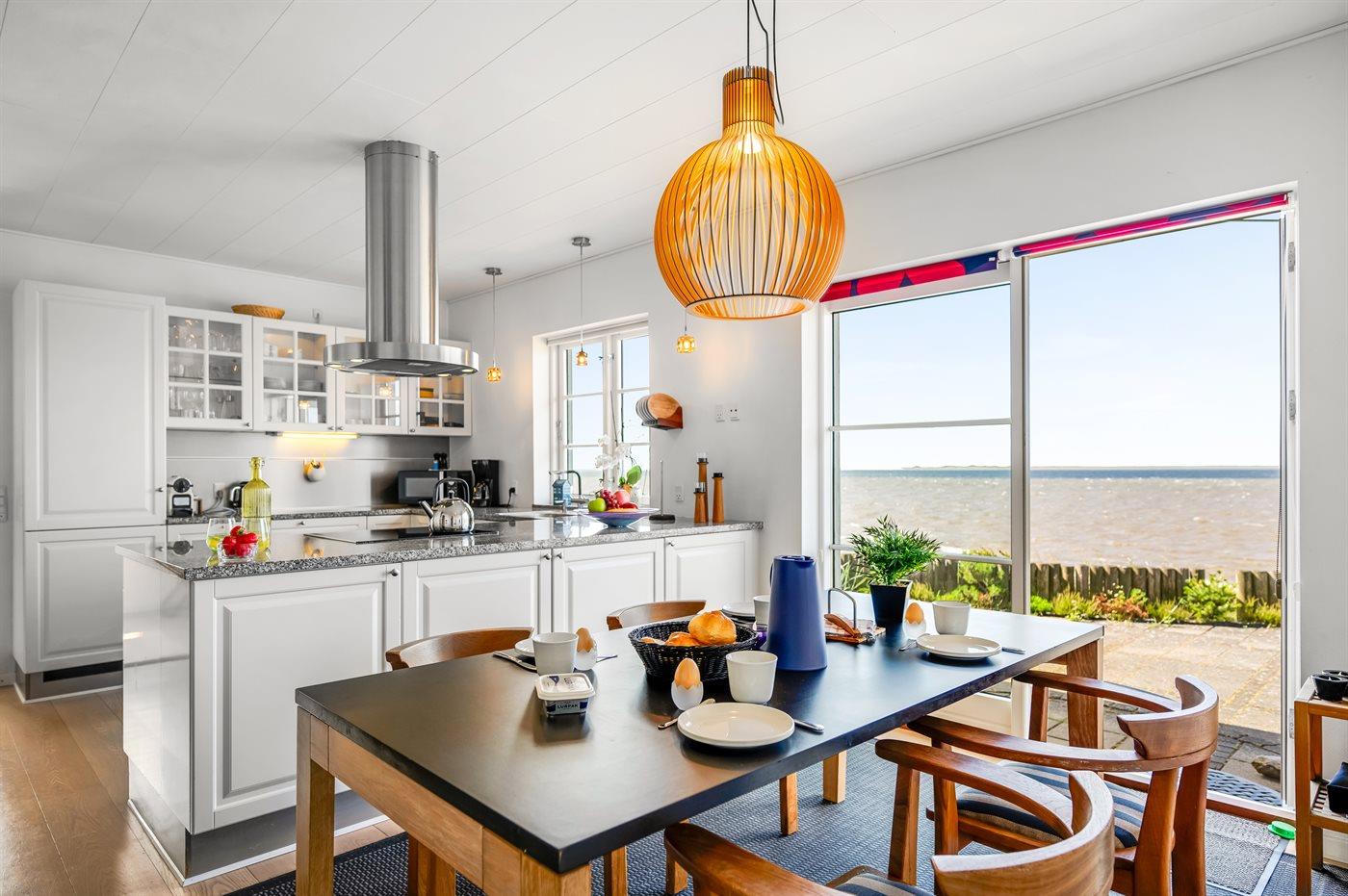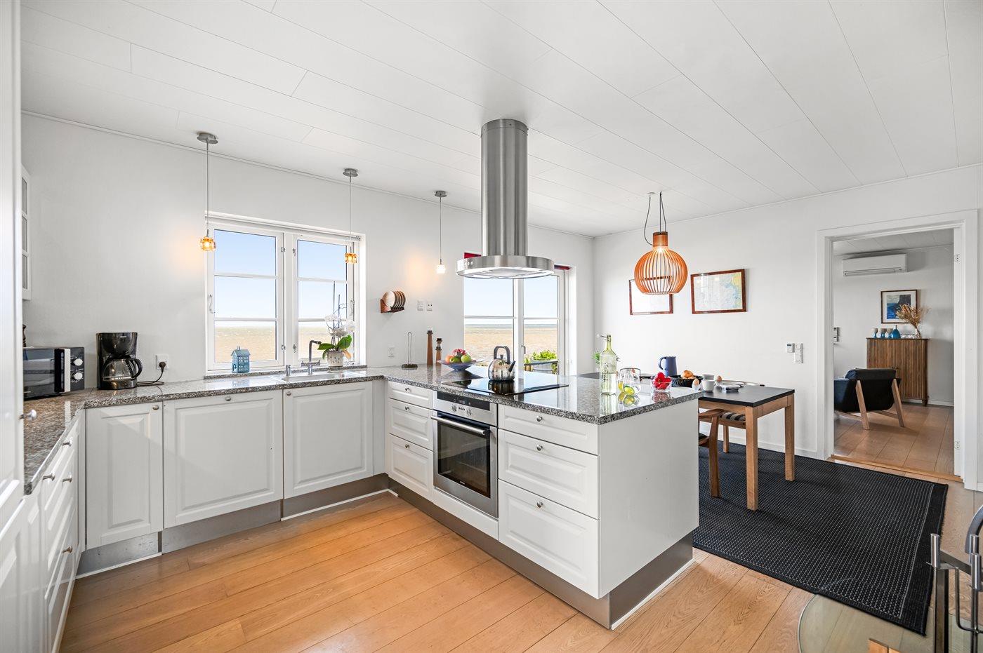 Køkkenet er udstyret med 1 køleskab. Der er 4 keramiske kogeplader, varmluftovn, mikrobølgeovn samt opvaskemaskine.