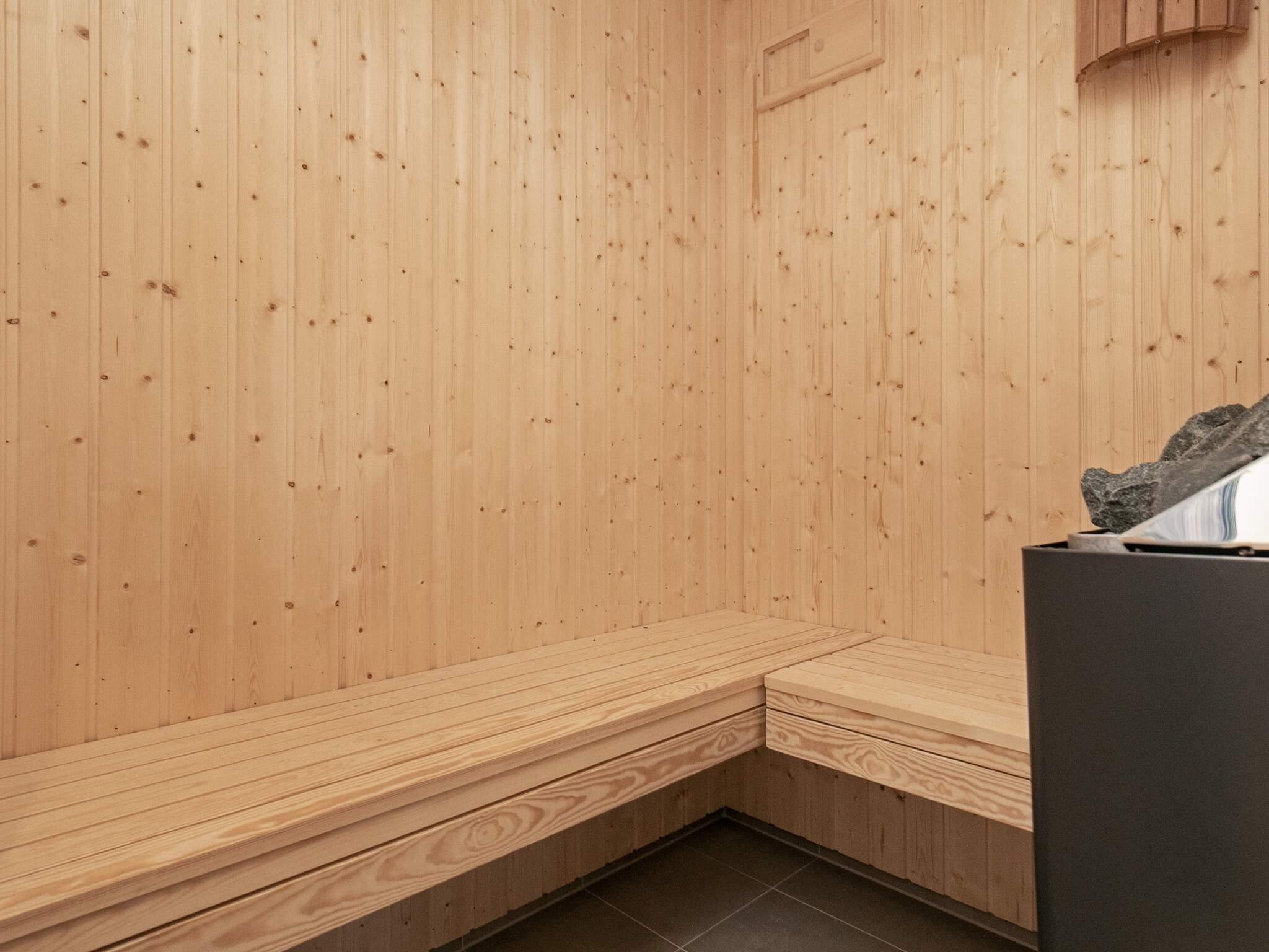 Indvendigt har huset en gennemtænkt planløsning, hvilket gør det særligt velegnet til familier eller vennegrupper. Fire soveværelser er indrettet med dobbeltsenge og højkvalitets boxmadrasser, mens en hems under taget giver to ekstra sovepladser, perfekt til børn eller teenagere. Soveværelserne er opdelt i to separate sektioner, hver med sit eget badeværelse, hvilket sikrer privatlivets fred og komfort selv for flerfamilieferier. Begge badeværelser er moderne og udstyret med gulvvarme.