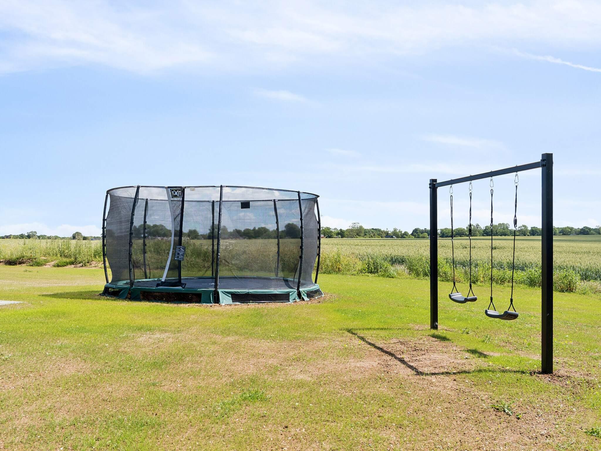 Udenfor finder I en stor terrasse med havemøbler og grill – perfekt til lange, lune sommeraftener med god mad og fælles grin. Haven har både trampolin og gynger, så der er også tænkt på de yngste gæster.