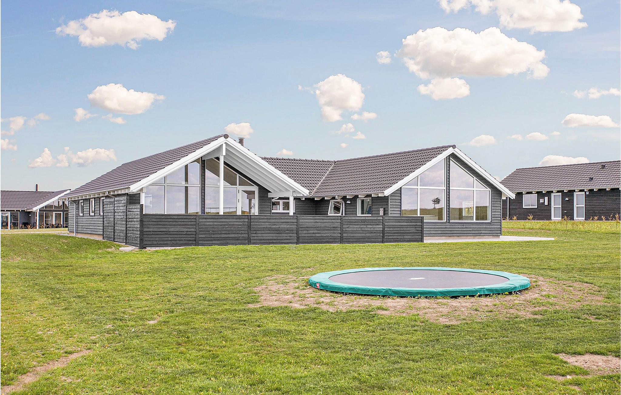 Moderne feriehus ved Skåstrup Strand med pool, sauna, aktivitetsrum og trampolin i gåafstand til stranden.