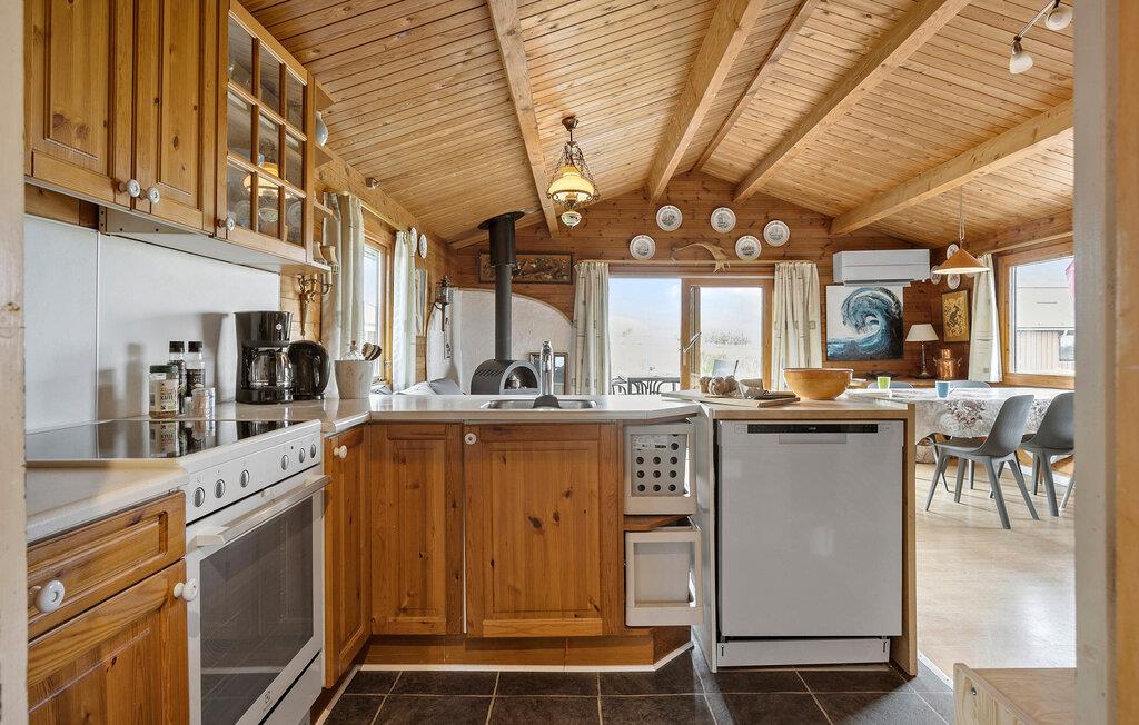 Tag familien under armen og rejs til Skåstrup Strand, hvor der venter jer et vidunderligt ophold lige tæt på vandet i dette indbydende hus. Indvendigt emmer det af hygge med varme træpaneler, pæne detaljer i udsmykningen og en brændeovn, der giver varme og stemning på en gråvejrsdag til måltiderne ved spisebordet og en hyggelig filmaften i sofaen.