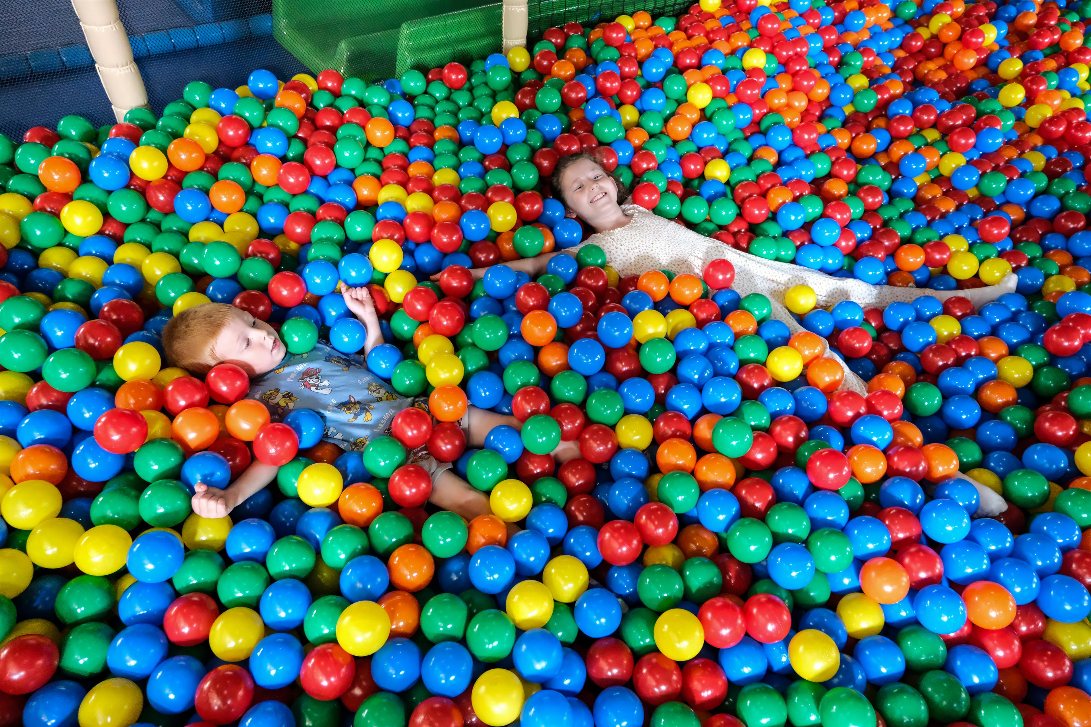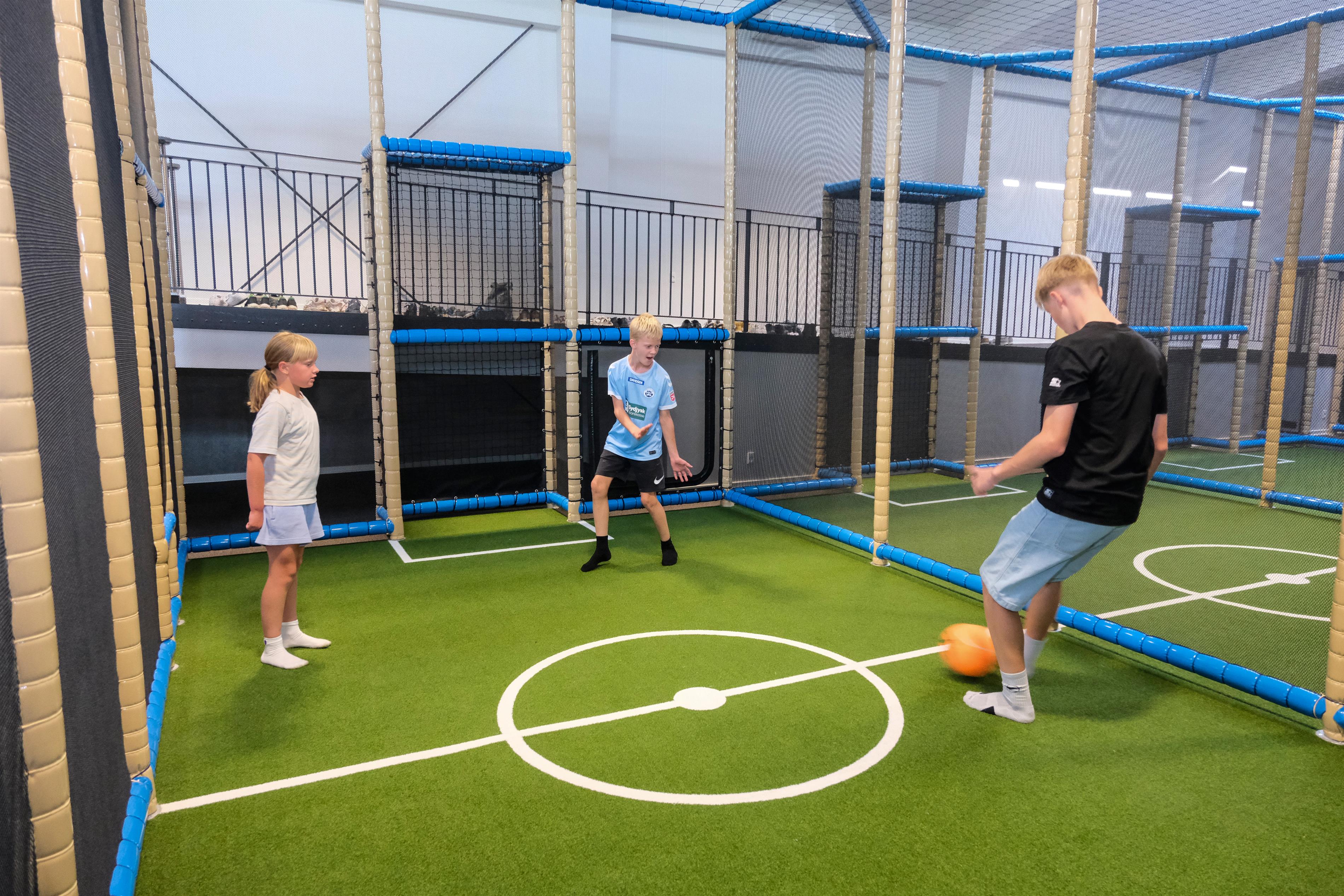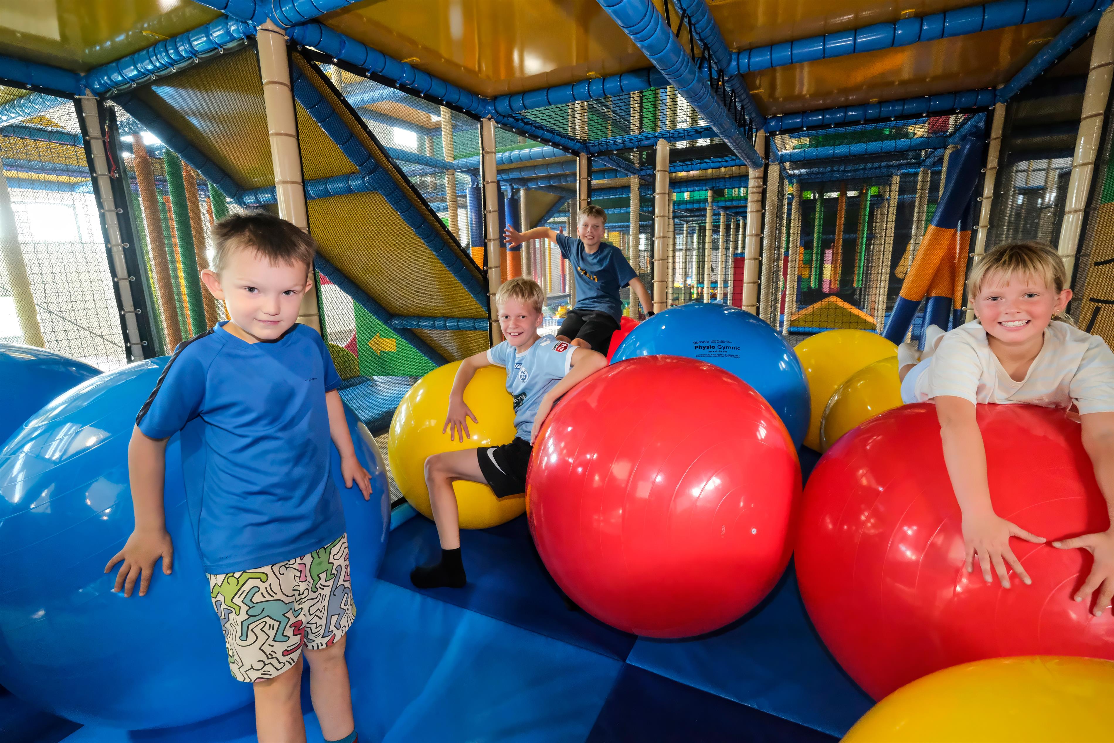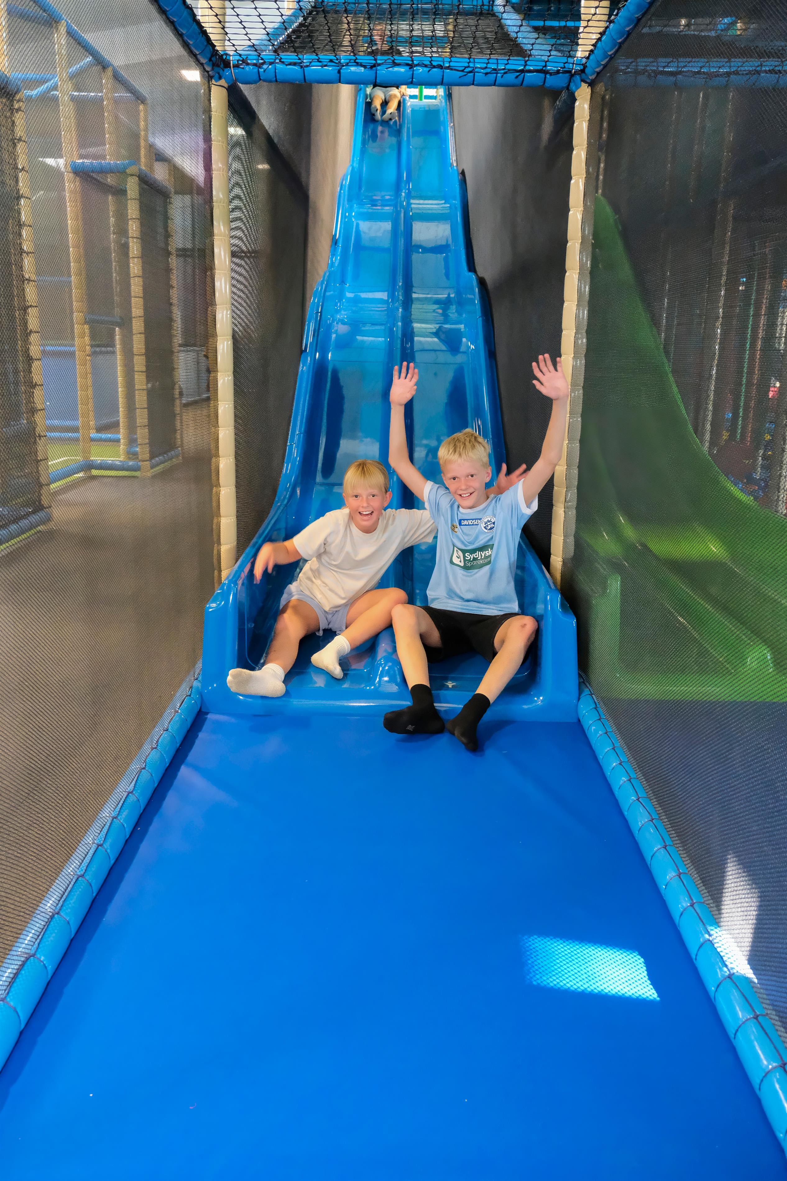 - Indendørs legeland på hele 700 m² – et farverigt og fantasifuldt univers fyldt med klatrestativer, trampoliner, rutsjebaner, boldbaner og interaktive spil