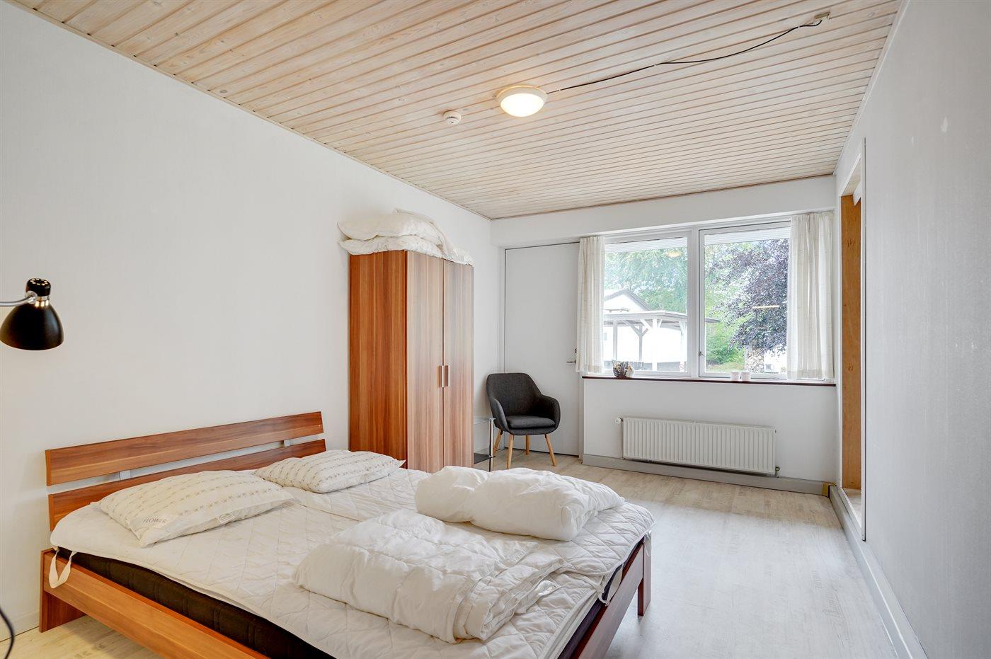 Der er i alt 1 soveværelse. Sovepladserne fordeler sig på: 2 sovepladser i dobbeltseng. 2 sovepladser i sovesofa (dobbelt). 2 af disse sovepladser befinder sig i stuen. Derudover er der 1 stk. barneseng.