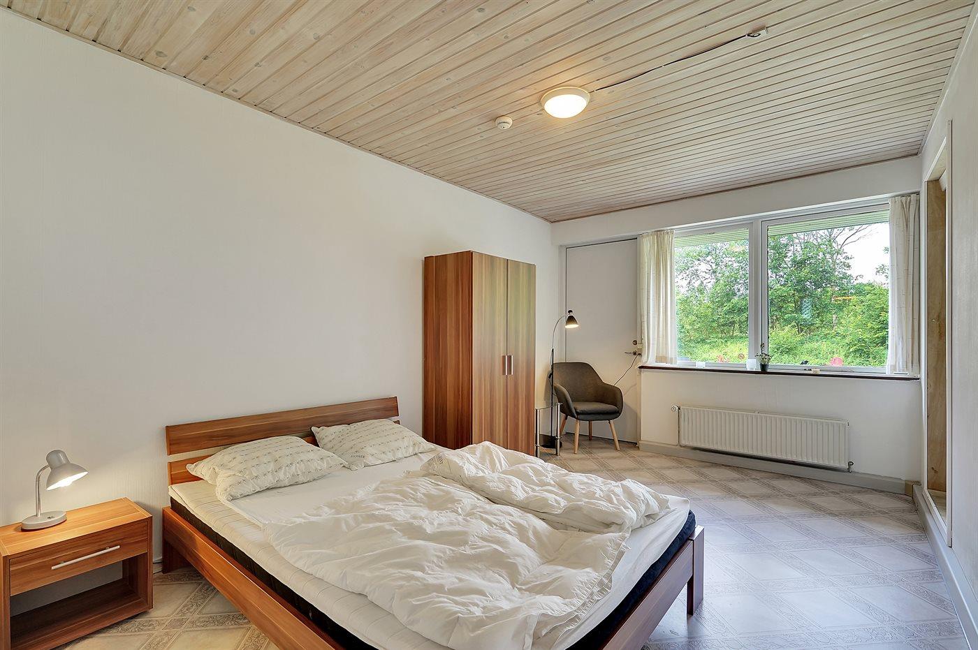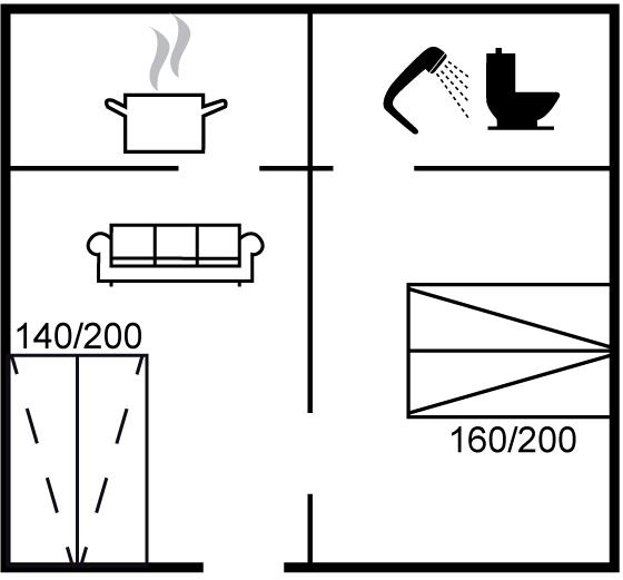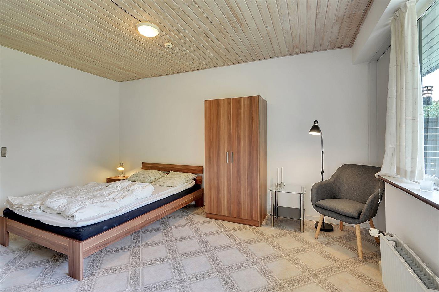 Der er i alt 1 soveværelse. Sovepladserne fordeler sig på: 2 sovepladser i dobbeltseng. 2 sovepladser i sovesofa (dobbelt). 2 af disse sovepladser befinder sig i stuen. Derudover er der 1 stk. barneseng.