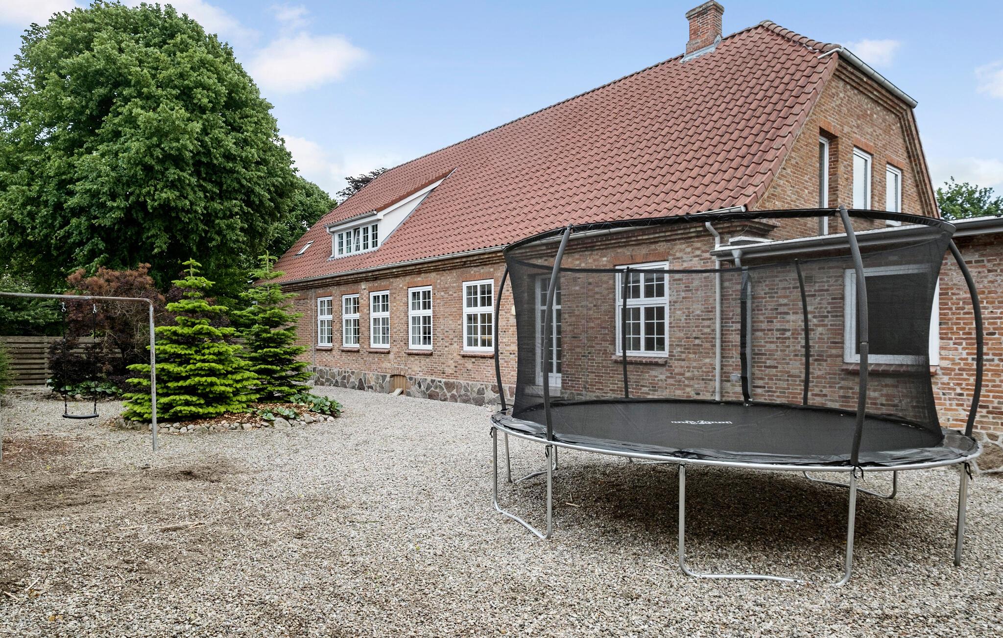 Udeområdet er tilsvarende dejligt. Her får I masser af plads at boltre jer på, en trampolin og mange sports- og legeredskaber, som børnene kan brænde energi af med i løbet af dagen. Alt imens kan de voksne nyde roen på terrassen, drikke en god kop kaffe og læse en god bog, inden der tændes op i grillen og tilberedes lækre bøffer under aftensolen.