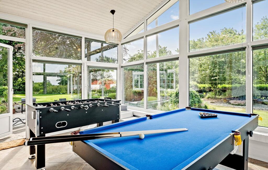 Velkommen til dette rummelige hus, der ligger i rolige, landlige omgivelser lidt vest for Løgumkloster. Her får I godt med plads og faciliteter til årets ferie eller fejringen af den store mærkedag med den udvidede familie på tværs af generationerne. Huset er nydeligt indrettet med velholdte trægulve, et fuldt udstyret køkken og store fælleslokaler, så I alle kan nyde nogle festlige måltider og hygge jer sammen i løbet af dagen. Lad kokkene tage sig god tid med madlavningen, mens andre dækker op ved spisebordet eller udfordrer hinanden til et slag pool eller bordfodbold med en vidunderlig udsigt til det grønne. Efter aftensmaden kan I hive brætspillene frem, arrangere en sjov familiequiz eller måske I skal forkæle jer selv med lidt lækker wellness i saunaen eller spabadet?