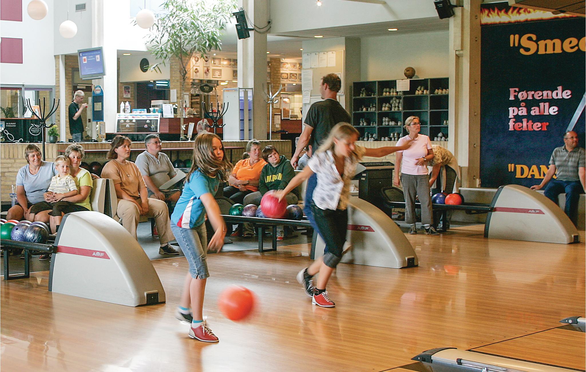 I feriecentret finder I en bred vifte af aktiviteter til en børnefamilie. Fyld dagene med ture i centrets sjove vandland, snup et spil bowling, hold formen ved lige med fitnessudstyret eller hyg jer med badminton, tennis eller padel. Der er også legepladser, hoppepude, cykeludlejning, spisesteder og et bålsted, hvor I kan sætte jer og bage snobrød i aftentimerne. Dertil kommer et udvalg af aktiviteter til børnene, som skifter fra sæson til sæson.
