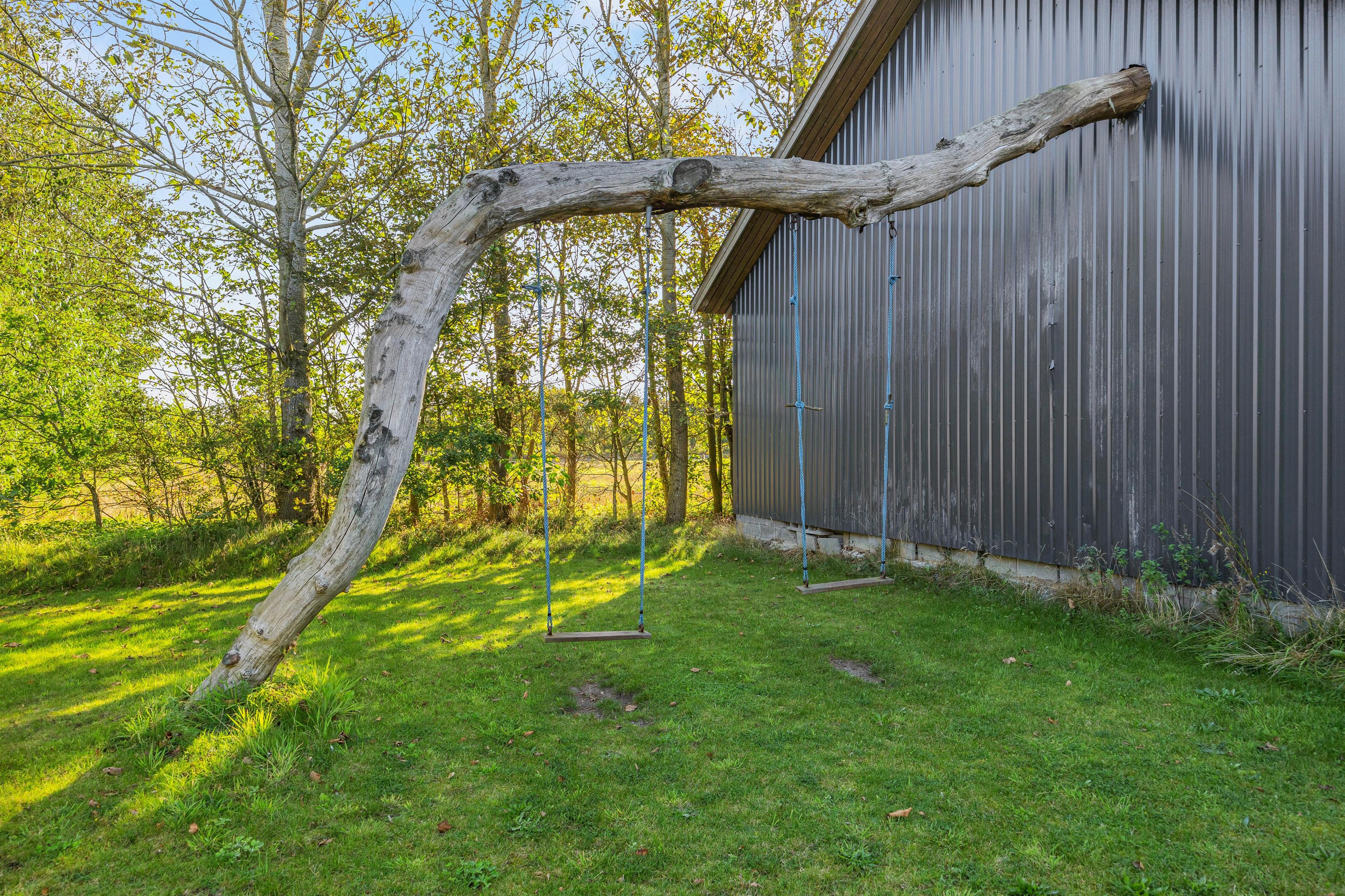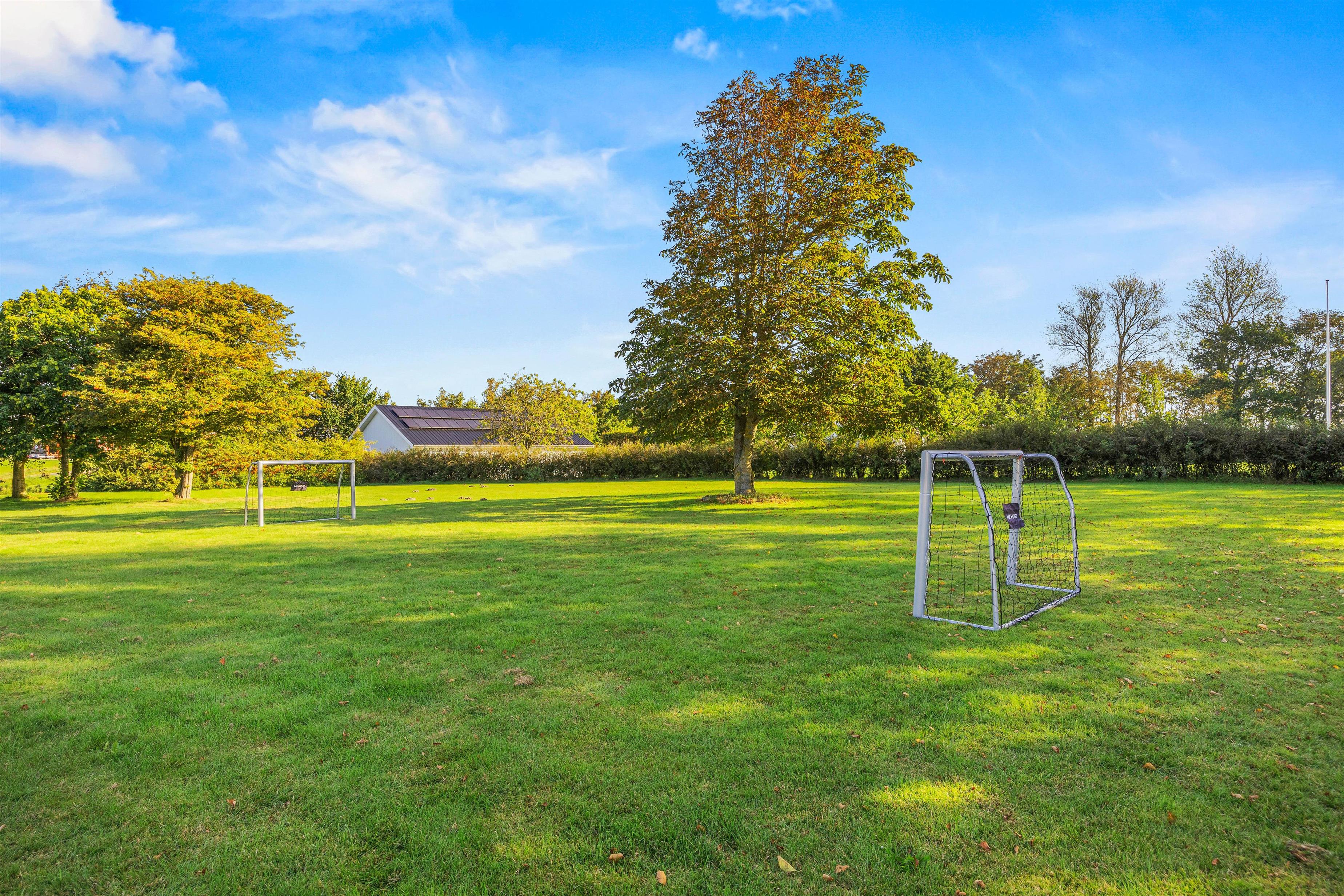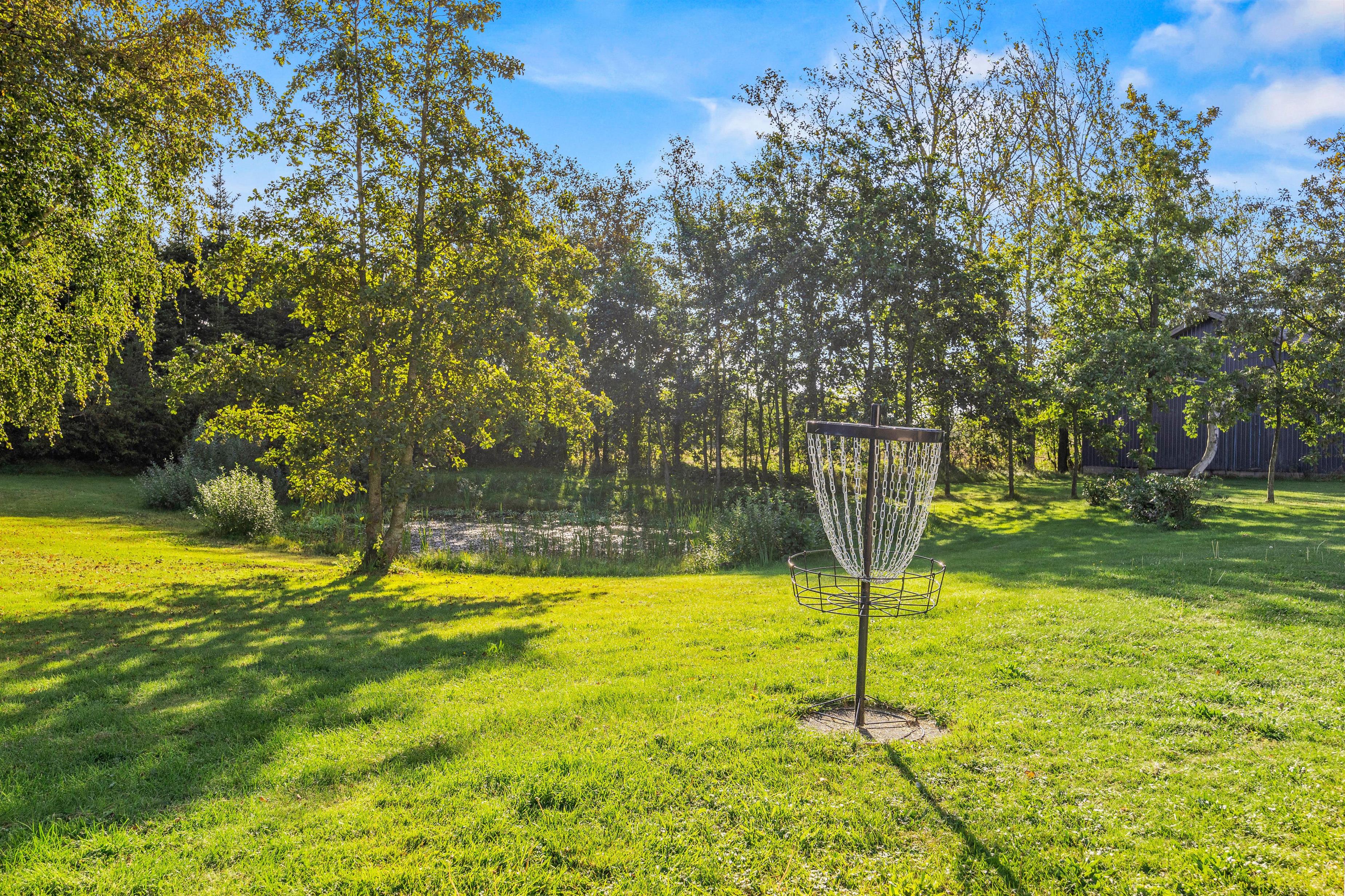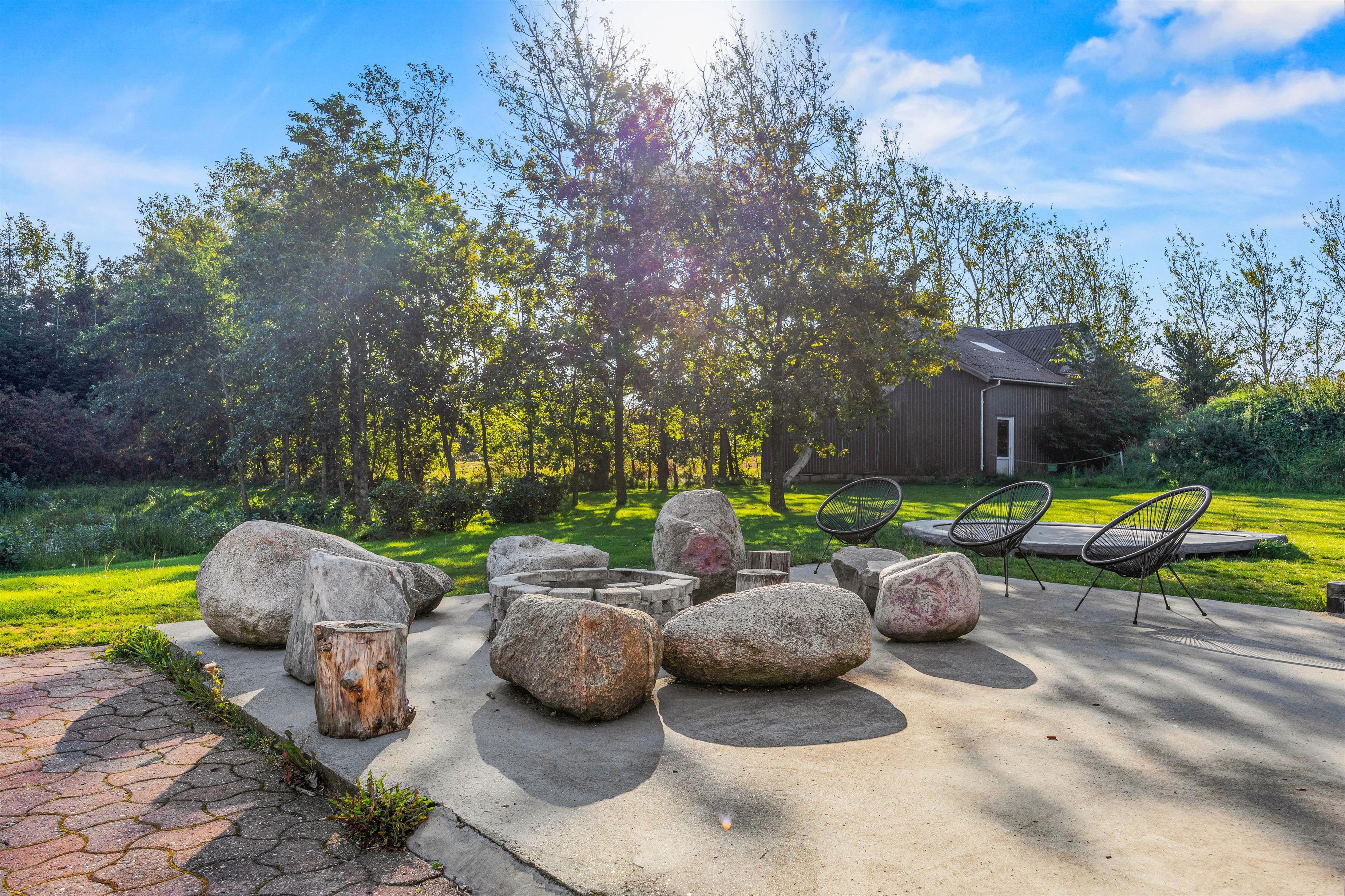 På den 5000 m2 store havegrund findes der desuden et stort bålsted, trampolin, en sandkasse og en gynge.