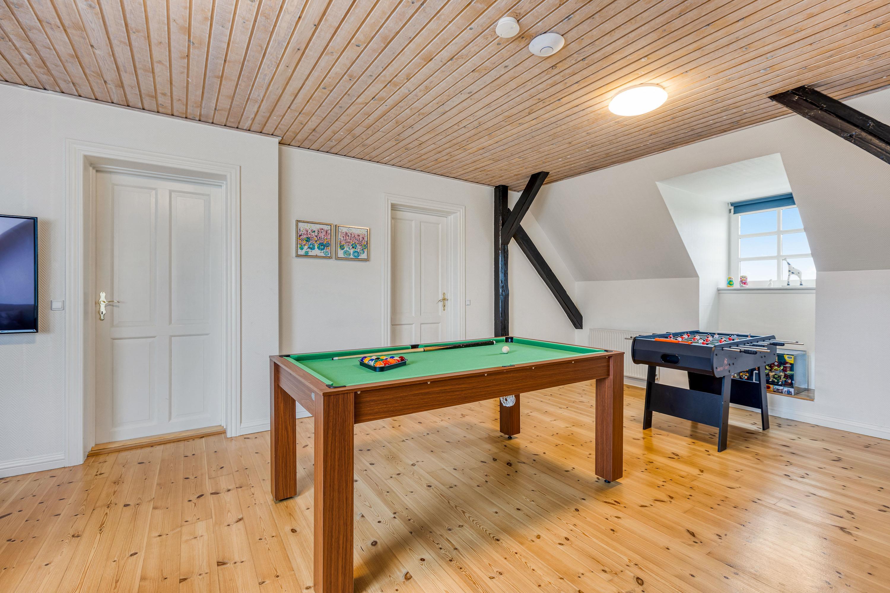 Der findes en indendørs pool på 5 x 5 meter til mange sjove timer, og der er gulvvarme i poolrummet. På husets første sal findes der et aktivitetsrum med multi-spillebord til bordtennis, poolbillard, airhockey eller bordfodbold. Her kan hele familien samtidig hygge med forskellige brætspil.