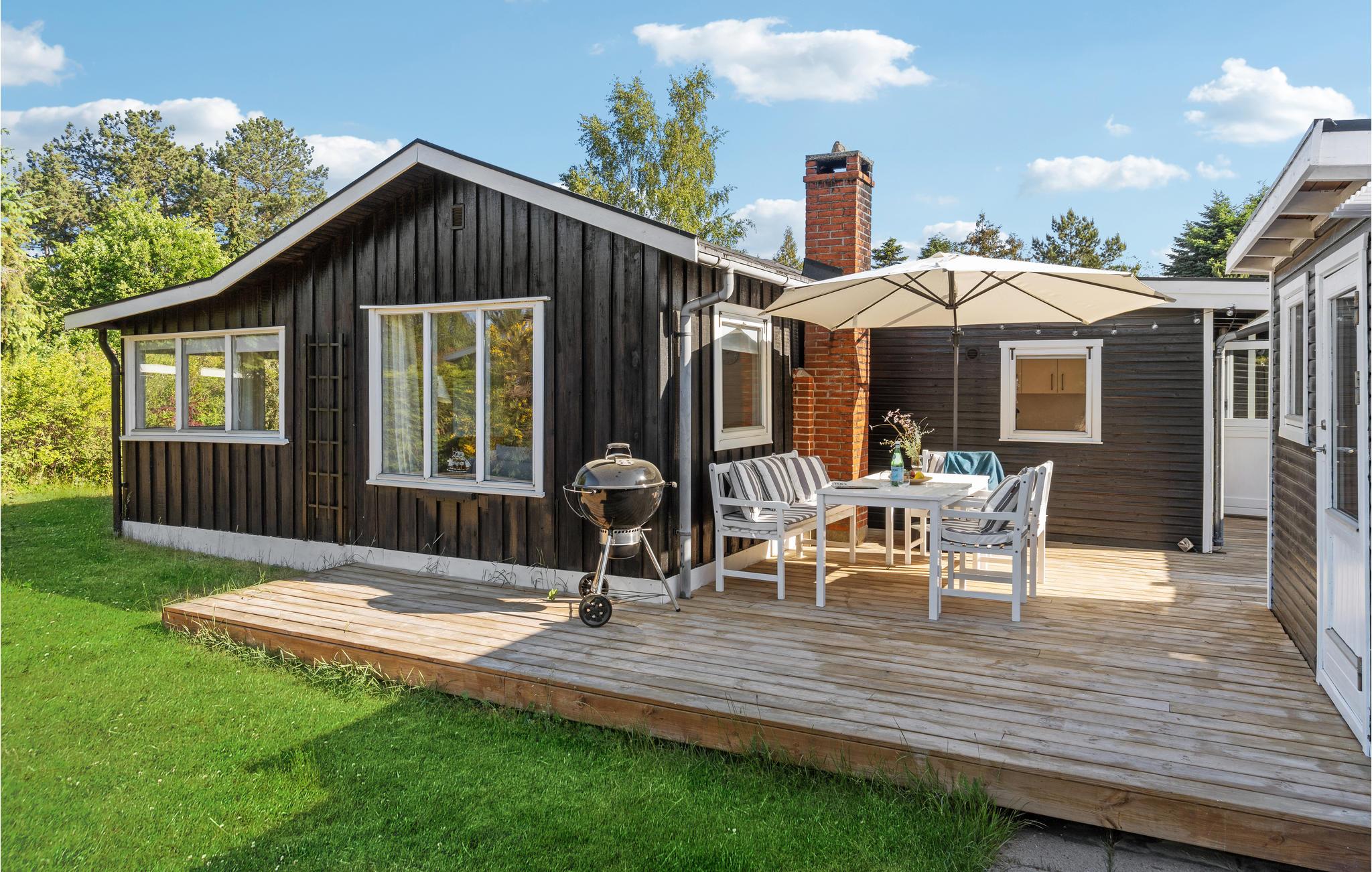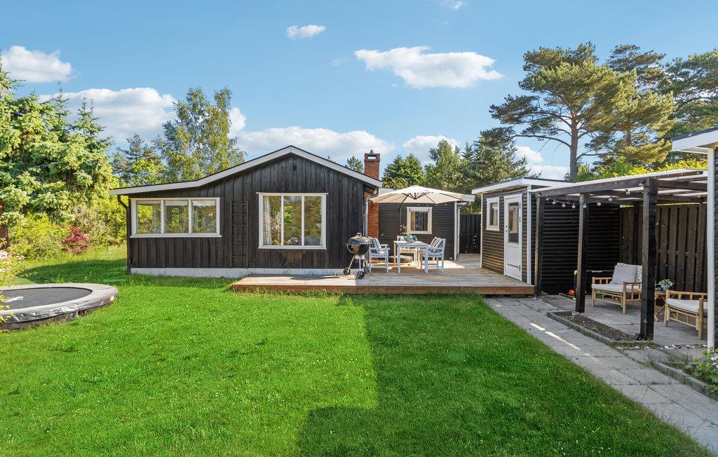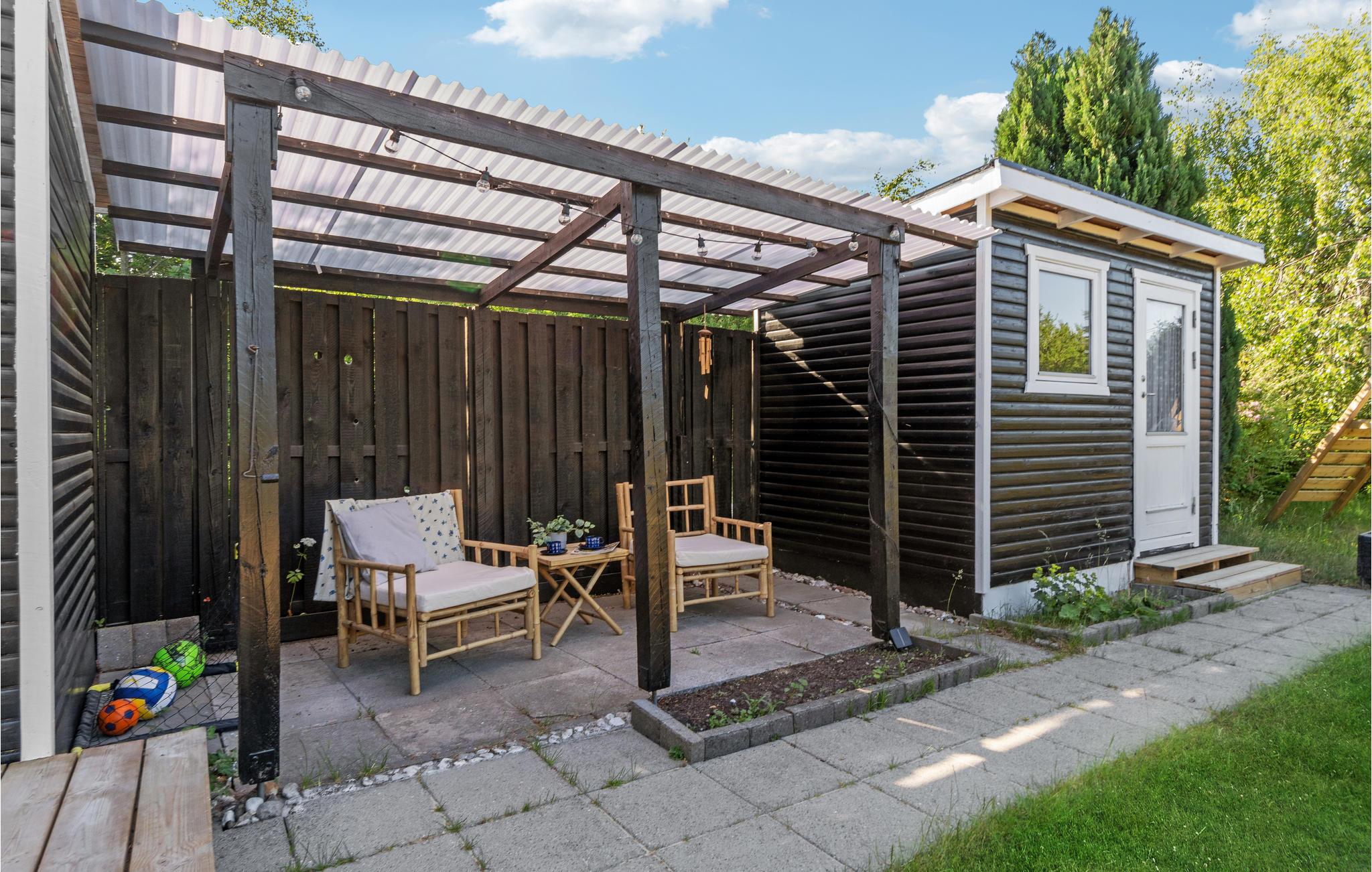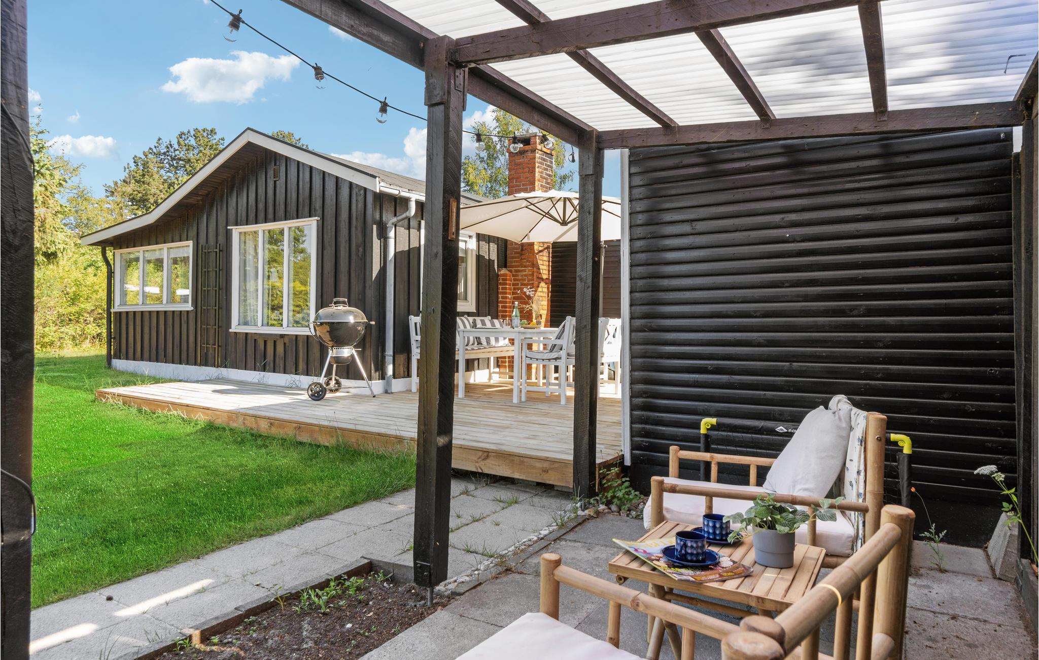Hyggeligt sommerhus ved Skærby Strand med terrasse, have og nærhed til stranden og aktiviteter.