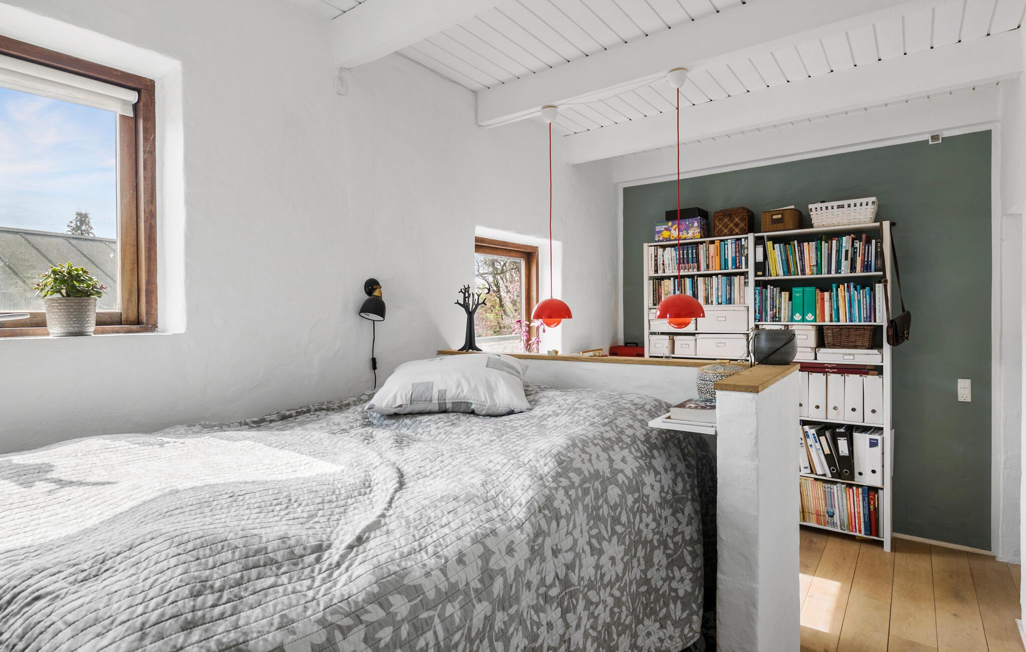 Rejs med familien til Østjylland, hvor I lidt nord for Aarhus og tæt på Kalø Vig finder en hyggelig base i dette fine feriehus. Nyd godt af den charmerende indretning med åben planløsning, synlige træbjælker og en brændeovn, der giver varme og et rart lydtapet på de lidt køligere dage. I stuen er der store vinduespartier, der giver et dejligt lysindfald og udsigt til omgivelserne, som kan nydes i sofaen med en god bog og et glas vin efter en aktiv feriedag.