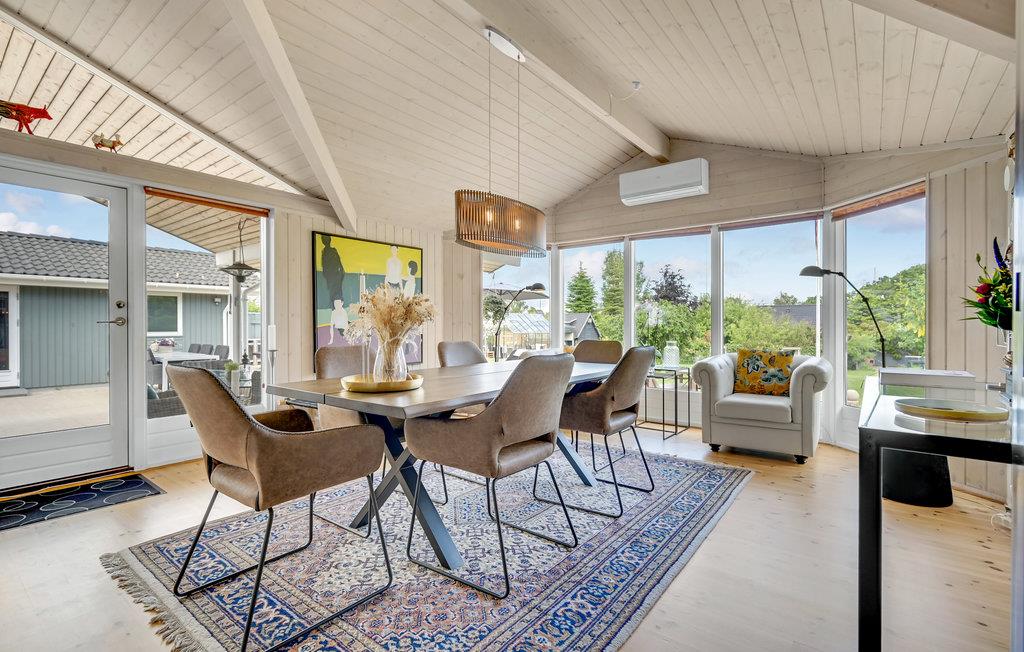 Forkæl jer selv med en dejlig pause fra den hektiske hverdag. Indenfor giver den stilfulde kombination af lyse og varme farver, de høje lofter, den moderne og smagfulde indretning og den store mængde af dagslys fra de store flotte vinduespartier jer en følelse af lethed, rummelighed, ro og harmoni. Her vil I genfinde jeres indre balance og nyde tiltrængt kvalitetstid. I køkkenet venter sjove madeksperimenter sammen med børnene, og spisebordet er helt perfekt til matador, kortspil og meget mere. Rundt om huset er der flere skønne terrasser, hvor I kan nyde jeres sommermåltider og den velgørende sol alt efter tidspunktet på dagen. De sene aftenstunder kan også tilbringes i det charmerende drivhus. Spil fodbold eller andre spil med jeres børn i den store have. Hvem mon finder hængekøjen først? Afslut en lun feriedag med en stemningsfuld barbecue. I morgen kan I gå til stranden og forfriske jer i vandet.