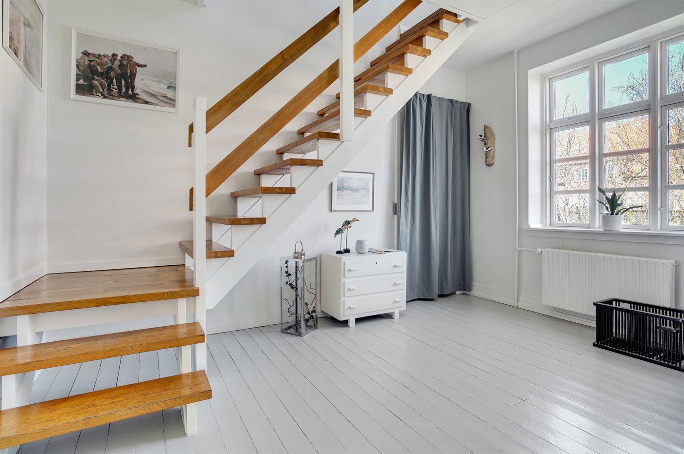 Lys og rummelig lejlighed i Skagen med have, tæt på kirke, centrum, havn og strand.