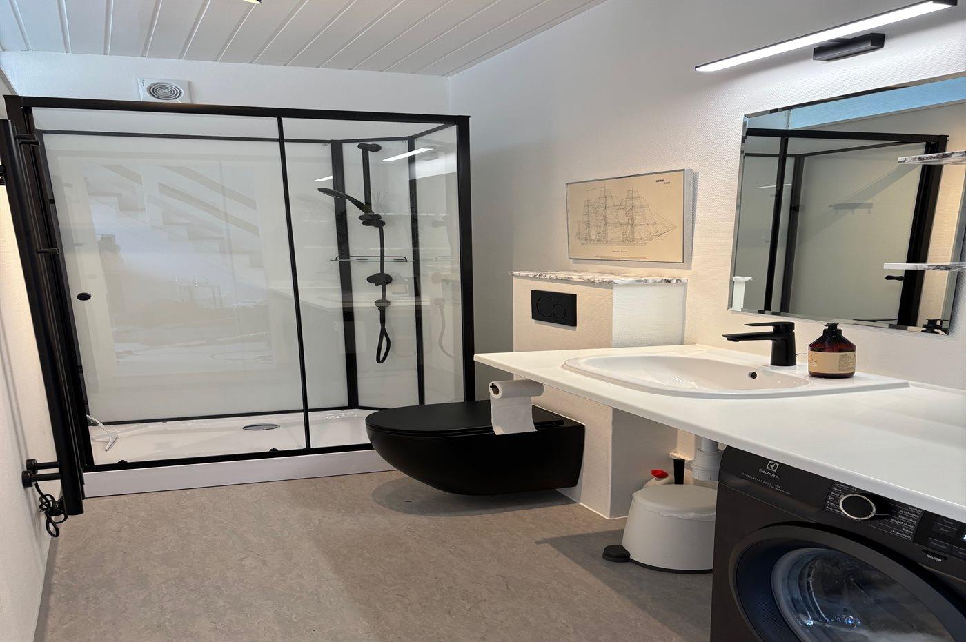 Der er 2 badeværelser med bruseniche og 3 toiletter, heraf 1 gæstetoilet.